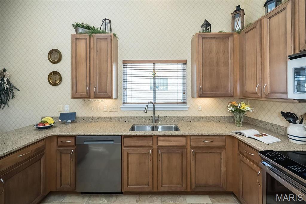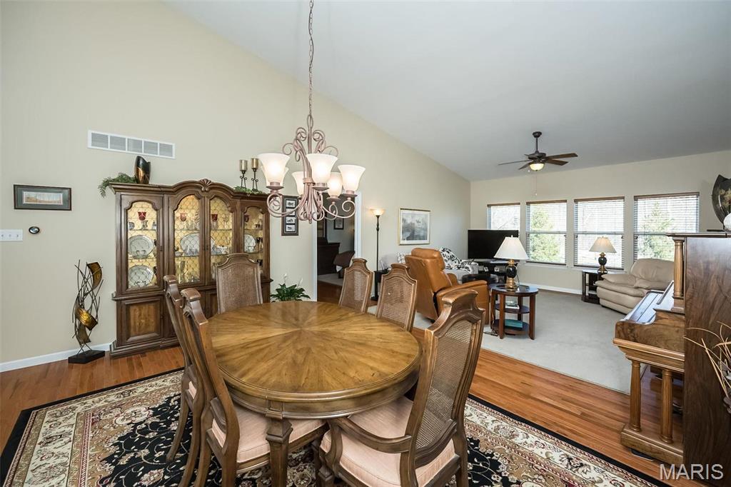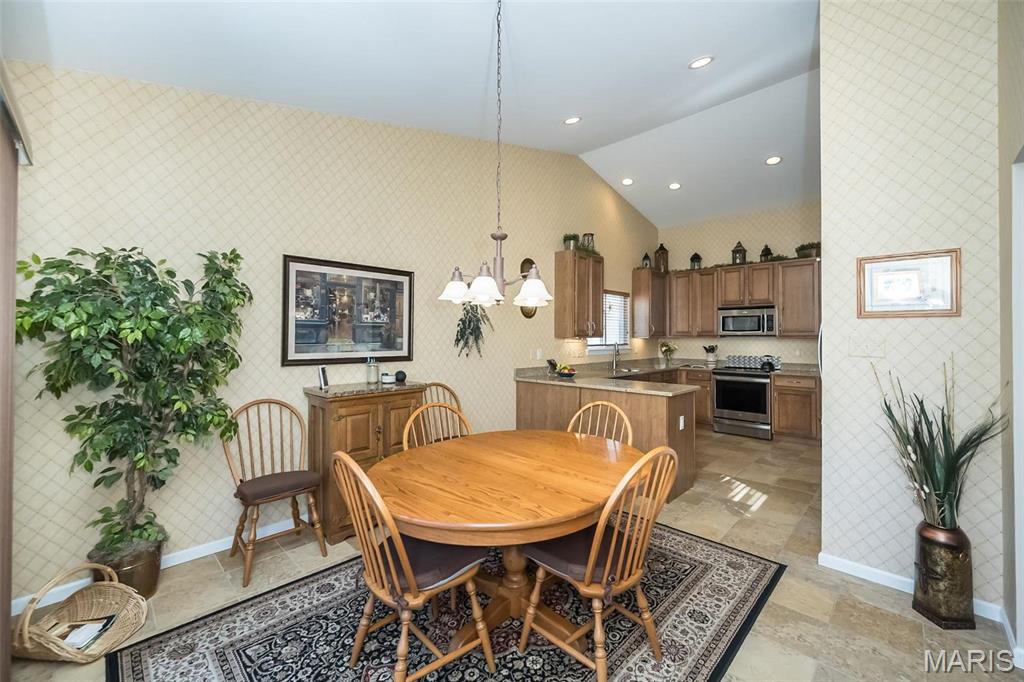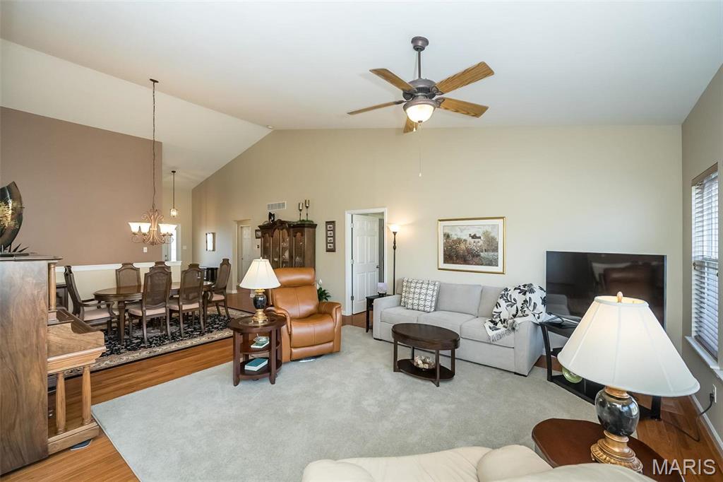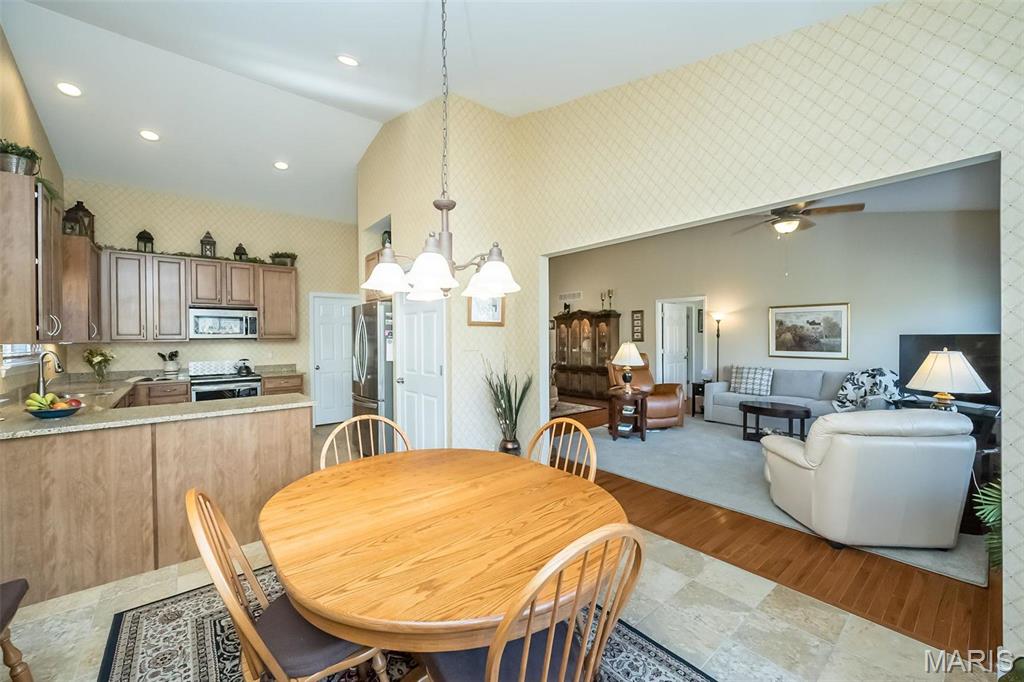 Style. Class. Sophistication! Quality and space abound in this spectacular ranch-style Villa that is loaded with high-end finishes and exceptional upgrades throughout! You will instantly feel the warmth within: inviting foyer, expansive dining/great rooms with soaring vaulted ceilings, gorgeous hardwood floors and picturesque wall of windows. The gourmet kitchen has beautiful 42" wood cabinetry, granite countertops, newer stainless appliances and sunny breakfast room. The primary suite is quite luxurious: spa-like bathroom with cabinet vanity, oversized shower, linen closet and custom walk-in closet. The 2nd main floor bedroom is generous in size w/large walk-in closet and is adjacent to the nicely appointed hall bath. Head downstairs to the amazing lower level that is truly a SHOWSTOPPER! The family/rec area sports a cozy fireplace, fully appointed wet bar with beverage fridge/dishwasher, 3rd bedroom/full bath and LOADS of storage! Not to miss: private deck, UNBEATABLE location! Location: End Unit, Ground Level
