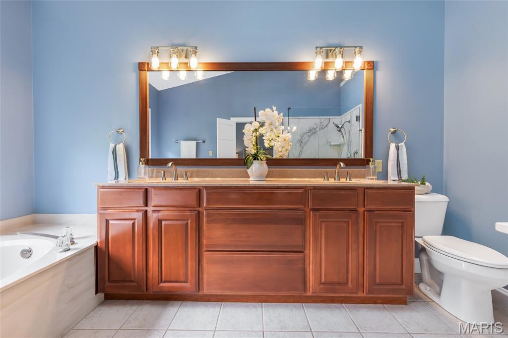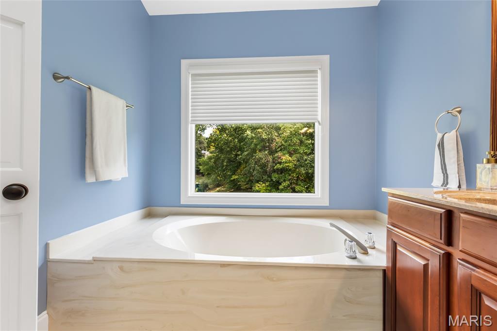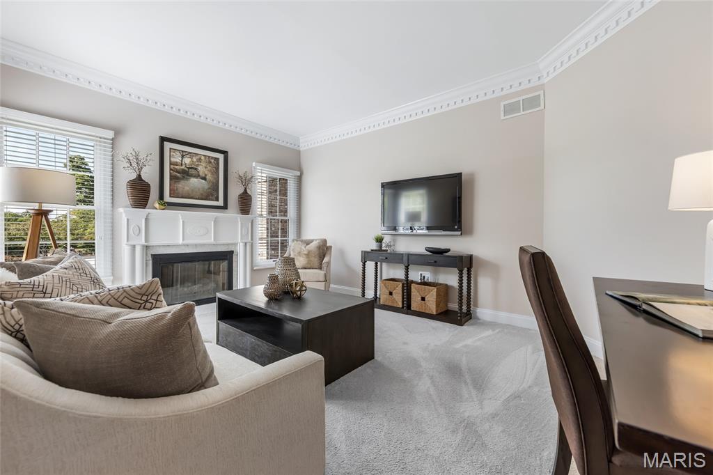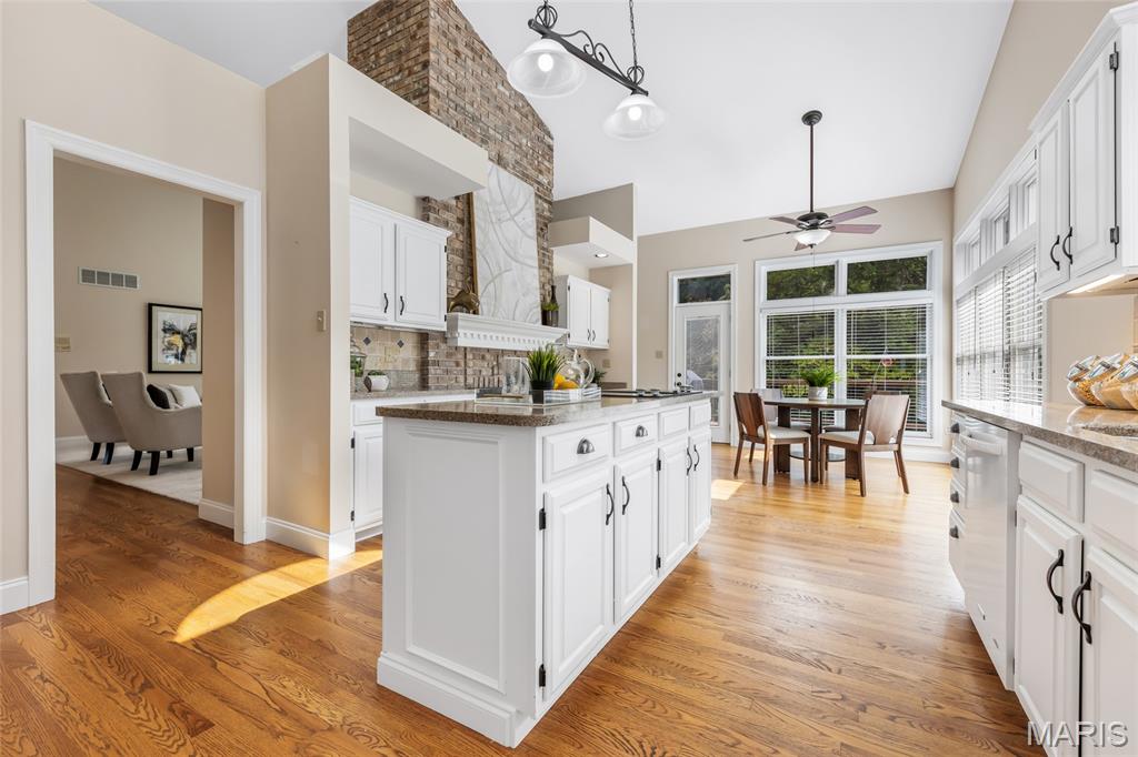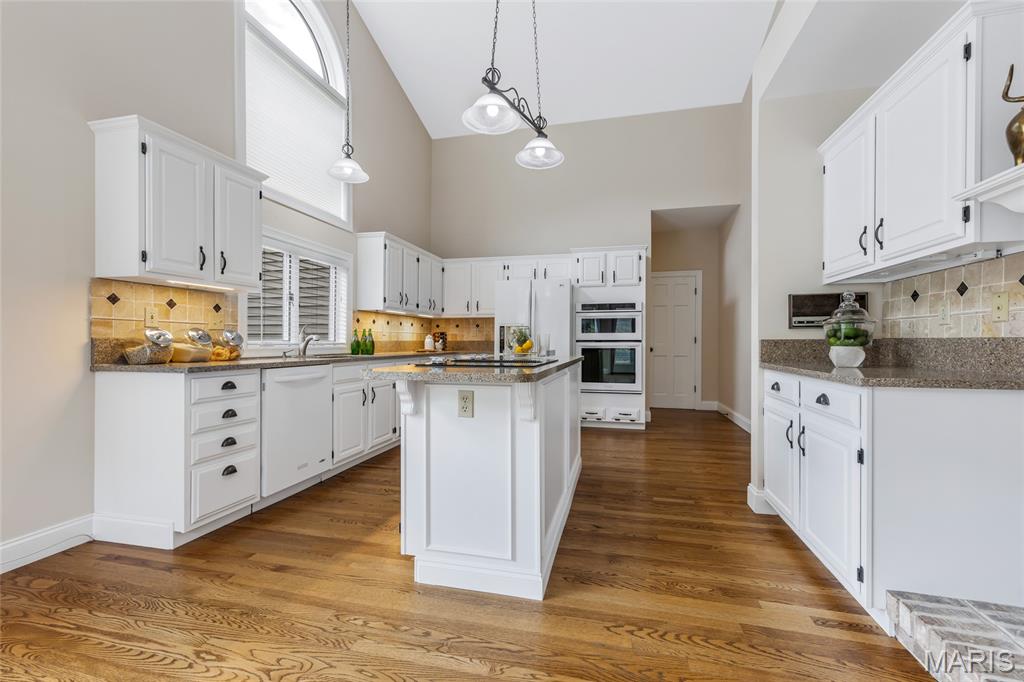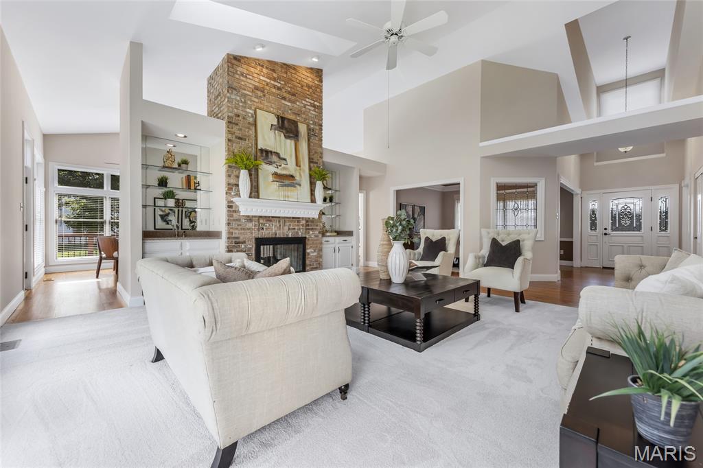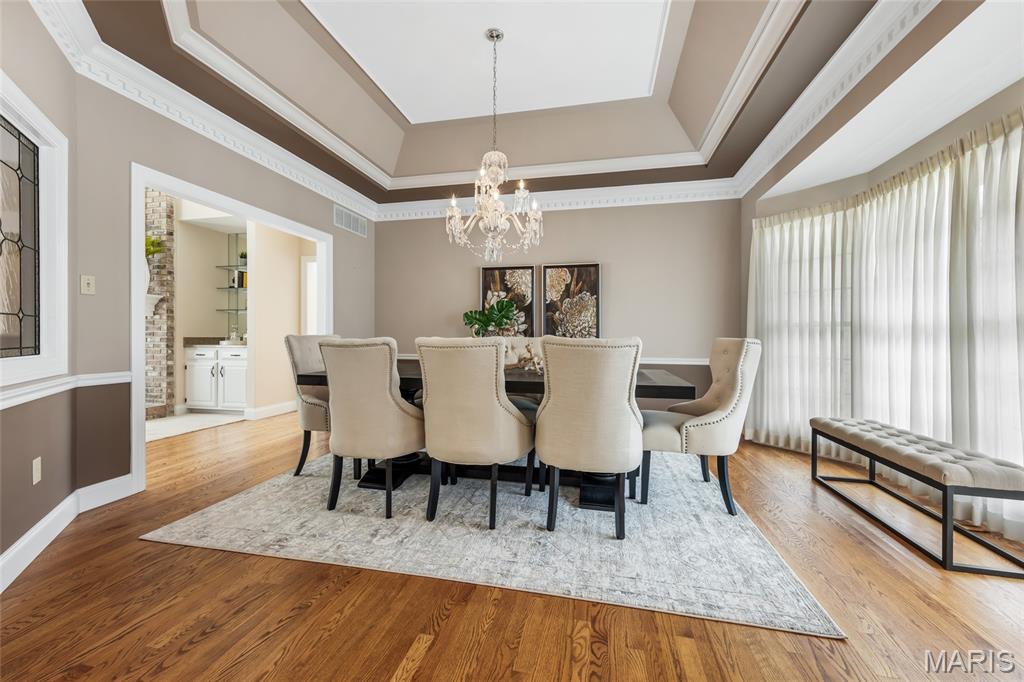 Welcome to 17609 Burnham Court. Nestled in sought after Wildhorse Village, this stunning 5 bedroom, 3.5 bathroom ranch offers over 3,600 sq ft of finished living on a 0.65 acre beautifully manicured corner lot. Stately curb appeal welcomes you from the covered porch into a light filled foyer, flanked by a formal living room with gas fireplace and dentil crown molding and a dining room with rich hardwood floors, bay window and coffered ceiling. The great room impresses with vaulted ceilings, palladian window wall, skylights, wet bar and a striking brick see through fireplace surrounded by built-ins. The chef’s kitchen features custom cabinetry, stone counters, center island, walk-in pantry and an adjoining, light filled breakfast room with deck access. The inviting main floor primary suite offers a vaulted ceiling, generous walk in closet, and a luxury ensuite bath with dual sinks, walk in shower and soaking tub. Two additional main floor guest bedrooms are serviced by a full hall bath. Rounding out the main level is a convenient laundry room with storage and powder room. The walk out lower level is perfect for entertaining: a spacious family room boasting a wood burning fireplace, wet bar, as well as two additional guest bedrooms, a full bath and ample unfinished. Enjoy the serene water views and private tree line while relaxing on the low maintenance deck or patio. Oversized 3 car side entry garage. Community amenities include pools, tennis courts, walking trails and lakes.