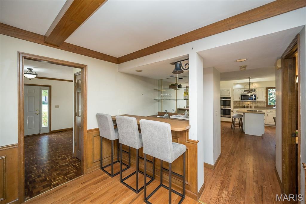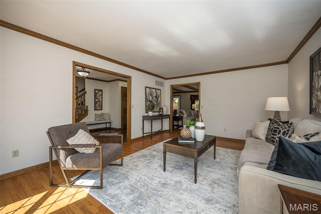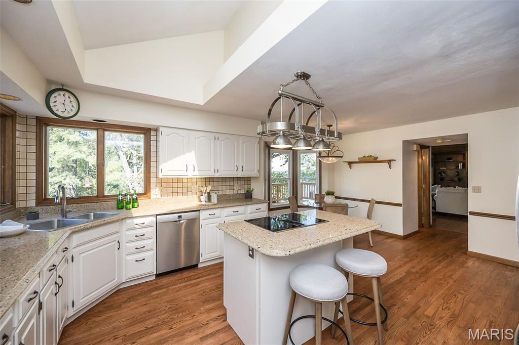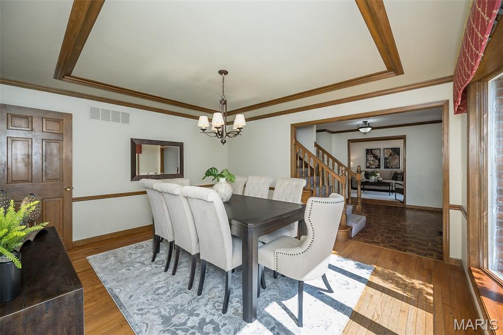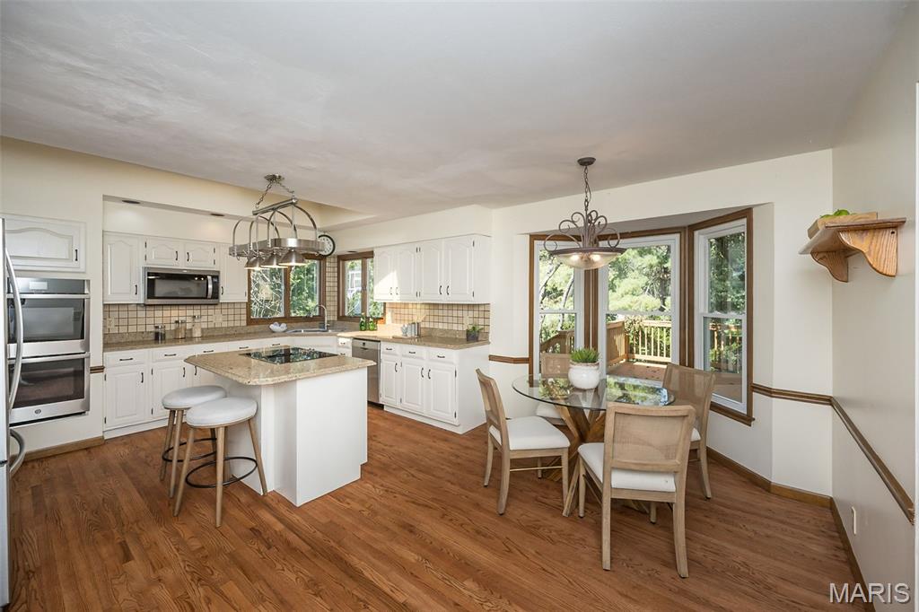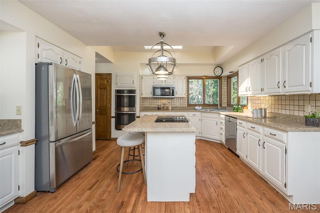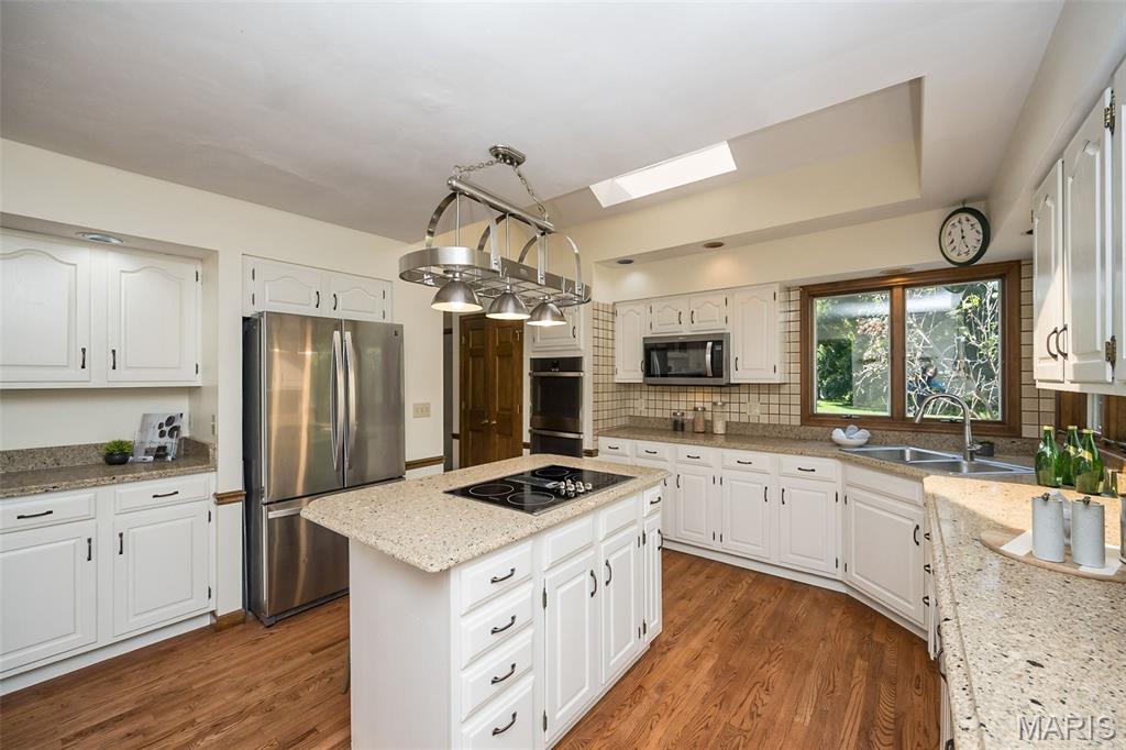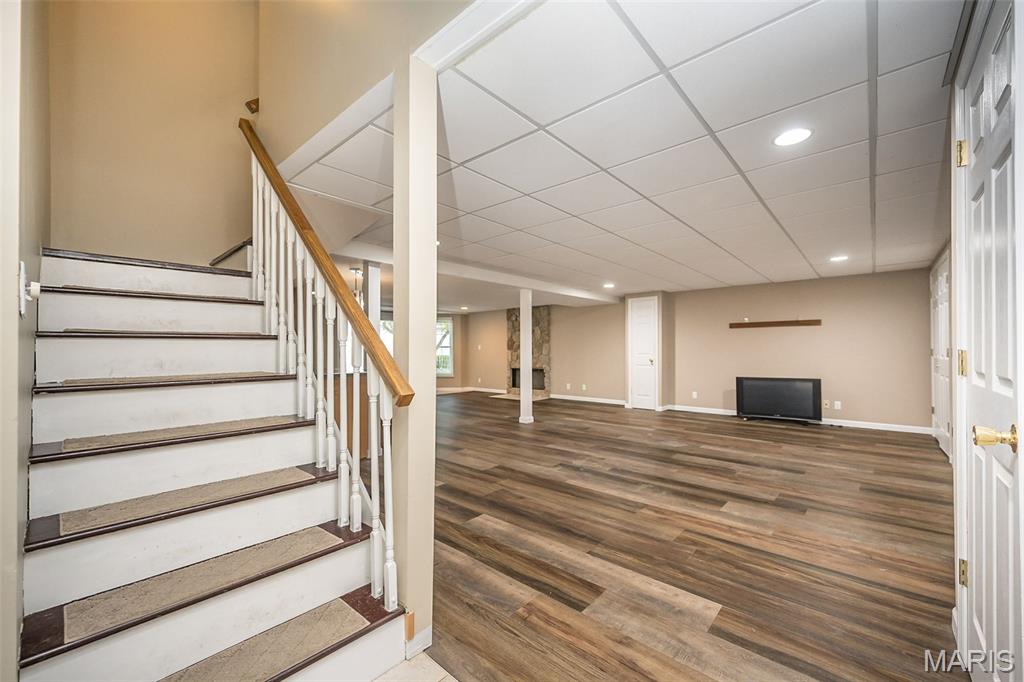 Welcome to 16401 Wilson Farm drive in the sought after Wilson Farm Estates subdivision. This spacious, well maintained and updated two story home features over 4,300 square feet of living space for you and your family to enjoy. Beautiful hardwood floors flow throughout the main level. The eat-in kitchen has tons of natural light, vaulted ceiling, and offers stainless steel appliances, double ovens, granite countertops, a bay window and newly installed hardwood. The adjacent oversized dining room will definitely accommodate large gatherings, and the great room and front living room provide ample gathering spaces for everyday living as well. The spacious primary suite on the second level is a retreat in itself, featuring its own fireplace, plenty of closet space, double sinks in primary bath, and a separate tub and shower. Three additional bedrooms and full bath complete the second level. The WALK-OUT lower level has new luxury vinyl plank flooring, a sleeping area, full bath, kitchenette, fireplace and plenty of storage. Enjoy the private, partially fenced back yard on the oversized deck. New roof 2025. Schedule your showing today before it is gone!