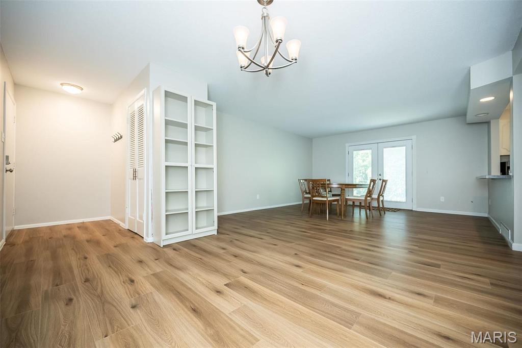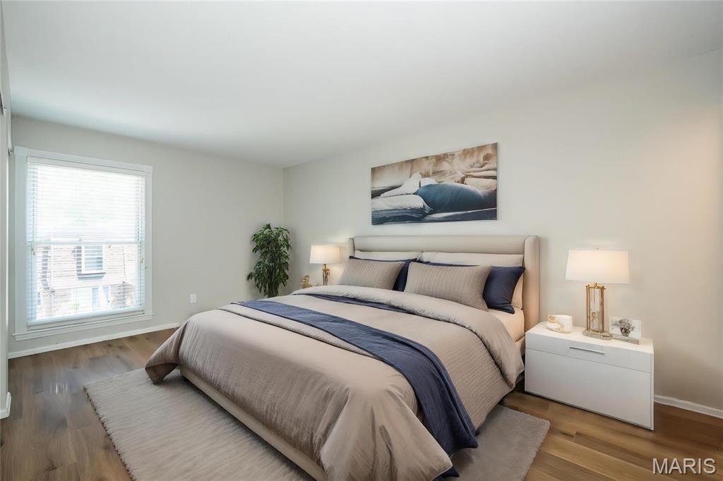 Beautifully maintained upper level condo with balcony overlooking trees with a new price that makes it even more attractive! Updated with new flooring throughout, spotless and ready for your move!Open concept living with living room and dining room open to the kitchen where you will find plenty of counter space for food prep and lots of cabinet space as well. Both bedrooms are spacious, with the primary bedroom having a private full bath. Secondary bedroom accesses the half bath in the hall. Washer/dryer in unit is included, enclosed gaqrage and storage locker! This neighborhood is close to everything, and you'll love the convenience of shopping, lots of restaurants, and easy access to highways, Creve Couer Lake, where you can access miles of hiking and biking trails! Parkway Central schools! Location: Suburban