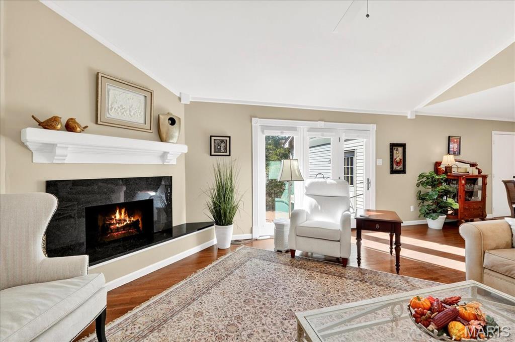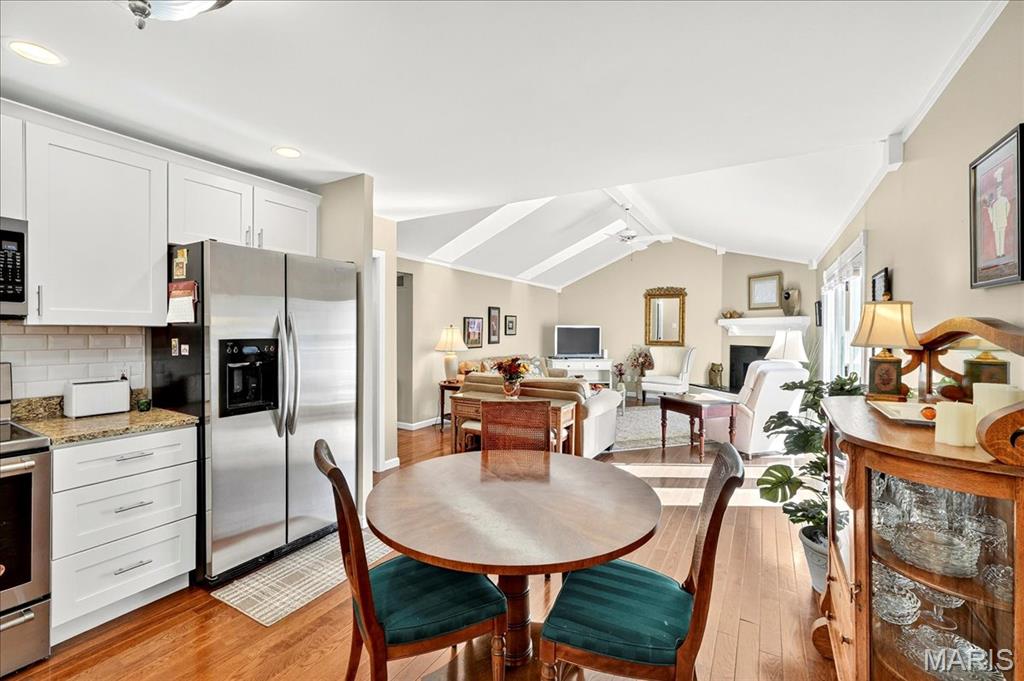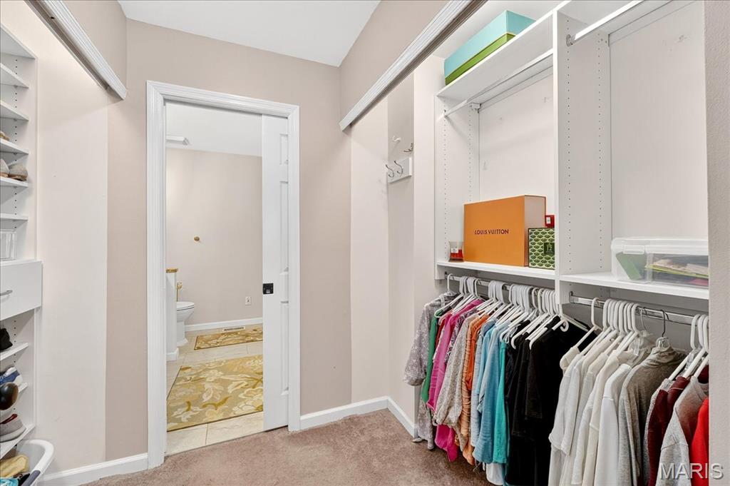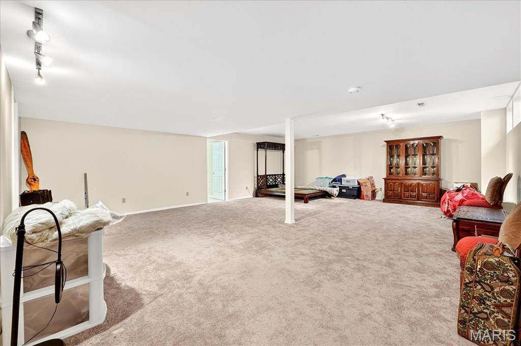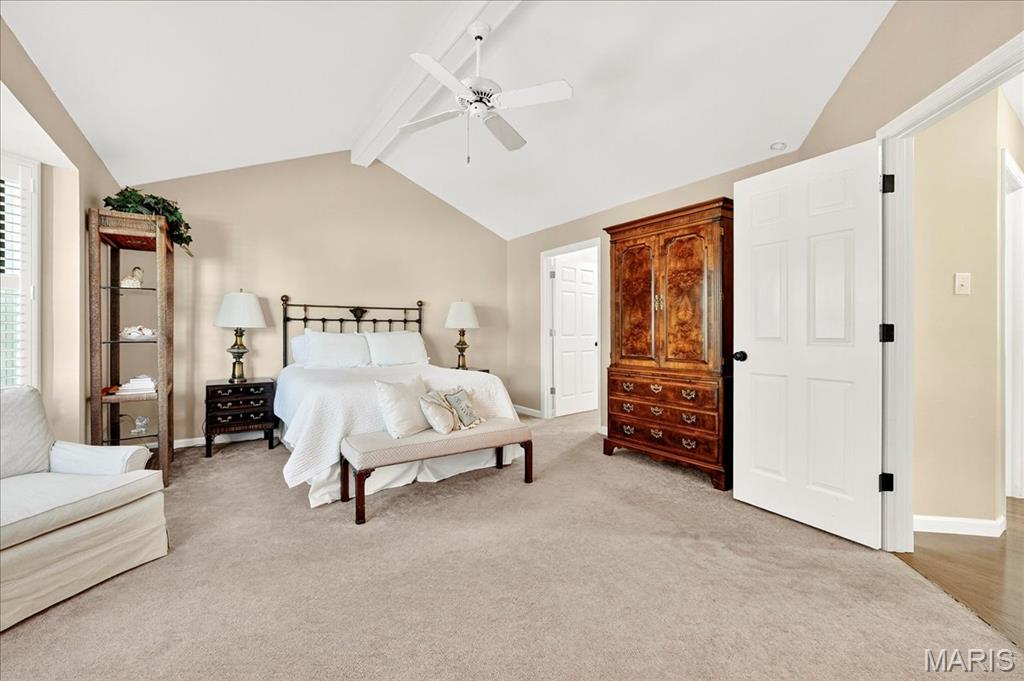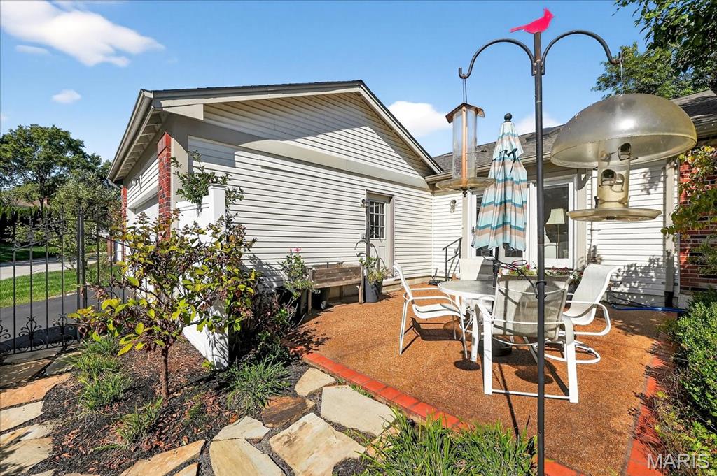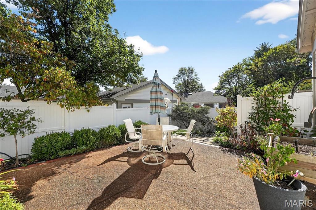 Beautifully Maintained End-Unit Villa w/2 BR, 2.5 baths & 2-car Garage. Main level offers a Formal dining rm w/wood floors, Great Rm w/s\Skylights, Fireplace & access to Private Patio, plus a Kitchen w/White Cabinets, Stainless appliances, Double Sinknk, Eat-In & has Garage Access. Bedrooms & Laundry on Main Level. Guest Room has Large Window & Closet. Spacious Primary Suite includes Bay Window, Plantation Shutters, Vaulted Ceiling, Fan, Neutral Walls & Carpet. Luxurious Bathroom w/Double Vanities, Separate Shower & Tub, both w/Glass Doors. Finished LL adds living space. The Private Patio is an Outdoor Oasis w/Aggregate Patio, Lush Landscaping, 6ft White Vinyl Privacy Fence & Driveway Access. Prime Chesterfield location near Shopping, Dining & Highways!