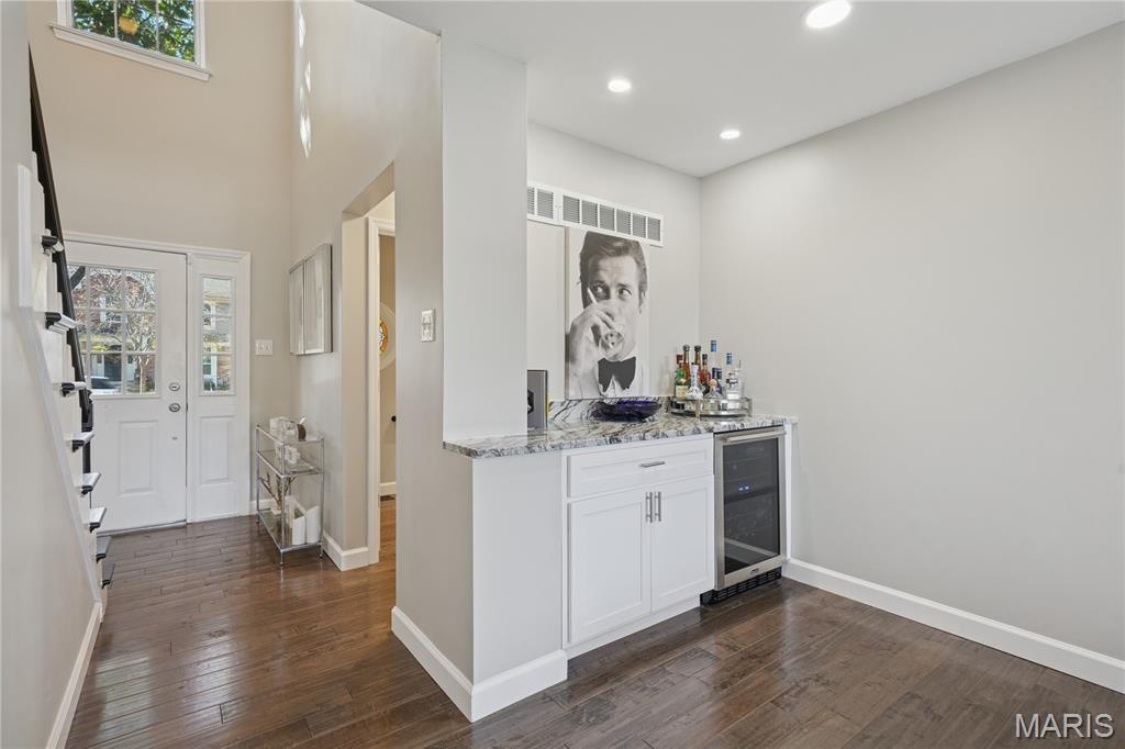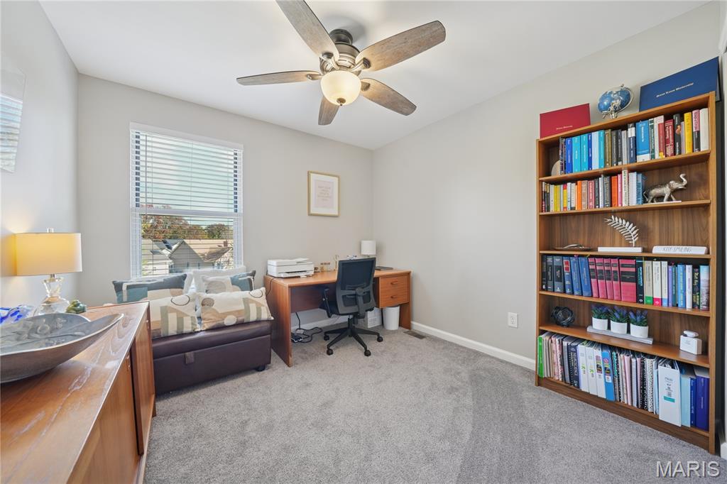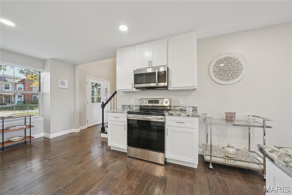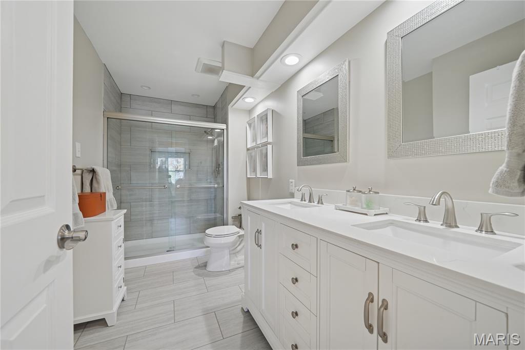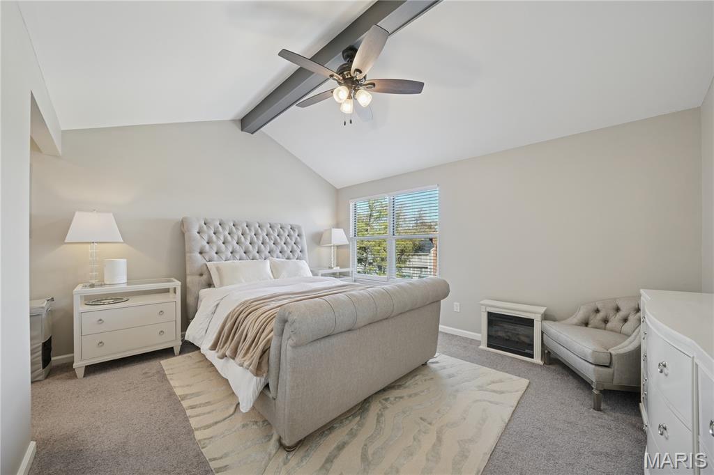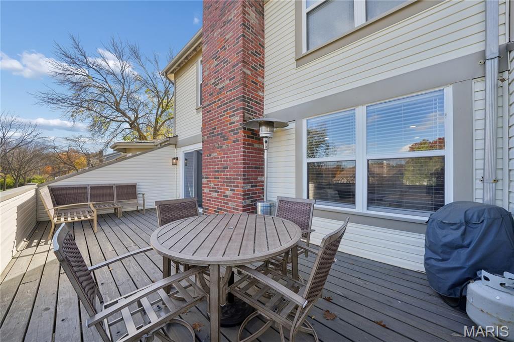Nestled at the end of a quiet Chesterfield neighborhood, this villa-style home offers both privacy and convenience, with nearby guest parking for added ease. The home features four bedrooms and two-and-a-half baths, thoughtfully designed for comfort and functionality. The exterior is beautifully maintained, with lush landscaping that creates a warm, welcoming entry. Inside, abundant natural light enhances the open-concept layout, complemented by modern lighting and rich flooring throughout the main level. The living area is anchored by a charming fireplace, adding warmth and character to the space. Seamlessly connected, the dining area flows into a well-appointed kitchen showcasing white shaker cabinetry, stunning granite countertops, and sleek stainless-steel appliances—all designed for both style and practicality. Upstairs, three spacious bedrooms and two full baths provide versatility and comfort. The primary suite offers a serene retreat with a spa-inspired ensuite and generous walk-in closet, while additional bedrooms are ideal for guests, a home office, or leisure. The finished lower level includes a large fourth bedroom with an egress window, a laundry area, and direct access to the tuck-under two-car garage. Outdoor living is elevated by a sizable deck—perfect for morning coffee or evening relaxation. With its elegant design and meticulous upkeep, this home is ideal for those seeking refined comfort and modern convenience.