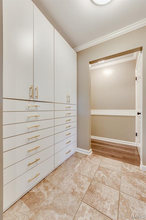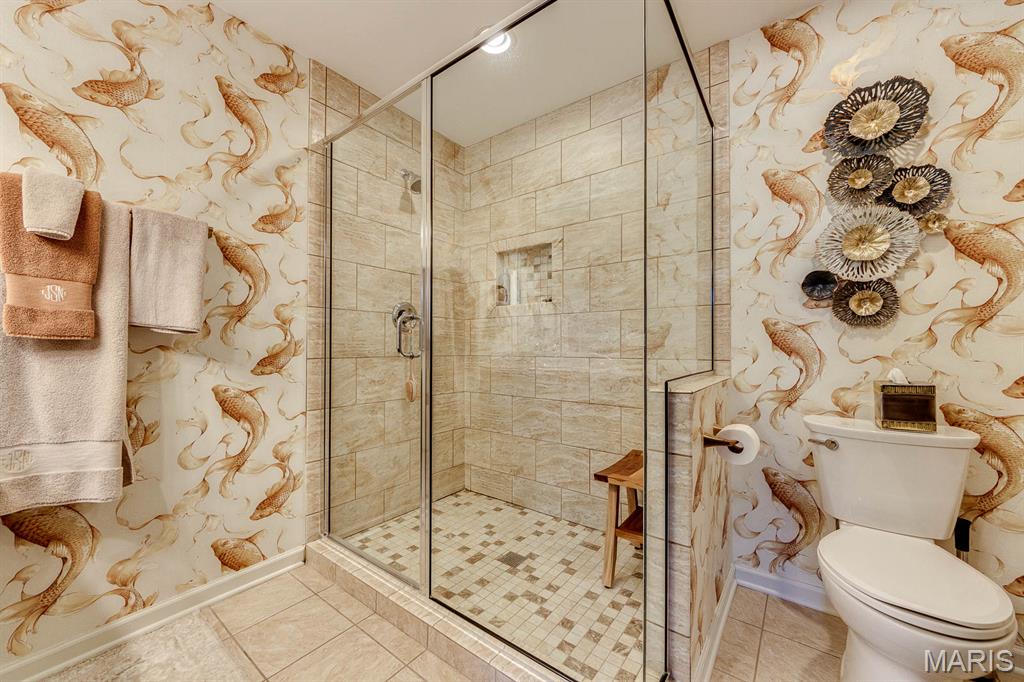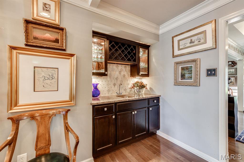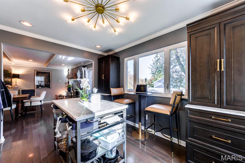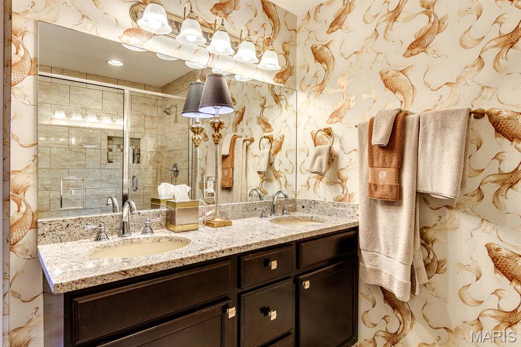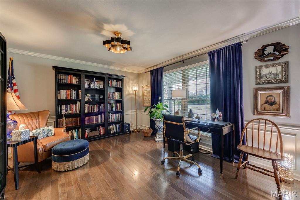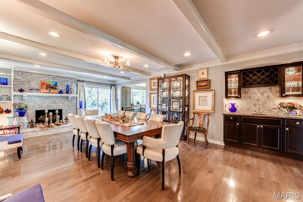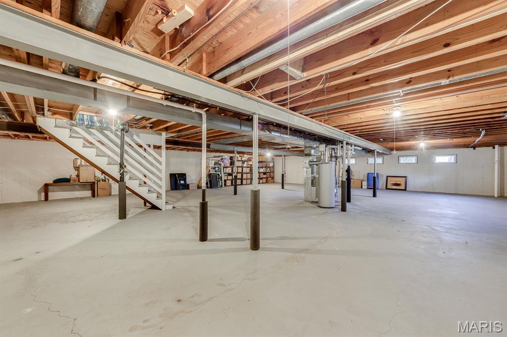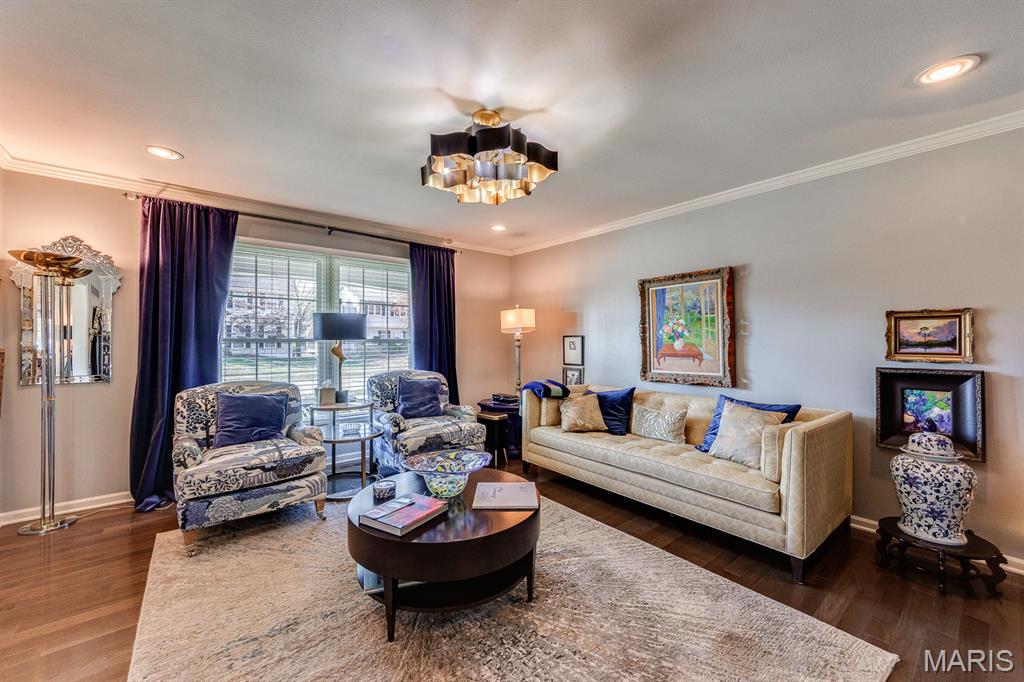 Experience refined living in this elegant ranch home, ideally situated on a private corner lot. A welcoming foyer leads into a seamless layout where hardwood floors extend throughout and craftsmanship is on full display—crown molding, recessed lighting, and thoughtfully designed living and dining spaces set the tone for timeless style. The main living areas—office, living room, and family room—offer distinct purpose yet flow effortlessly from one to the next. The spacious family room, anchored by a brick gas fireplace, creates a warm, inviting atmosphere and is generous enough to accommodate dual uses, it currently serves as both a sophisticated dining space as the heart of the home for effortless entertaining. From here, access to the deck and fenced backyard extends your living area outdoors, perfect for hosting gatherings or enjoying a quiet morning coffee. The updated kitchen blends beauty and function with custom cabinetry, abundant storage including a new pantry, granite countertops, a designer tile backsplash, and stainless steel appliances featuring a dual fuel stove with convection oven. The main-floor laundry and attached 2-car garage add everyday convenience. Retreat to the luxurious primary suite, offering impressive space and a spa-inspired bath complete with dual vanities, a custom tile shower, and a walk-in closet. Two additional bedrooms and a beautifully updated full bath complete the main level. The expansive, unfinished lower level presents endless possibilities—ready for your personal vision. Outside, the fenced backyard provides the perfect balance of privacy and relaxation, completing this truly exceptional home. HVAC upgraded in 11/2024 - programmable to hold a consistent temperature, VAV system. Seller has installed a whole house generator for peace of mind in the STL weather.