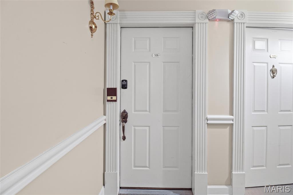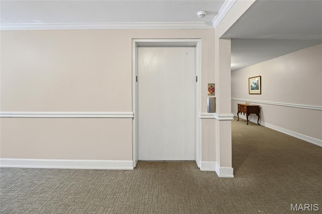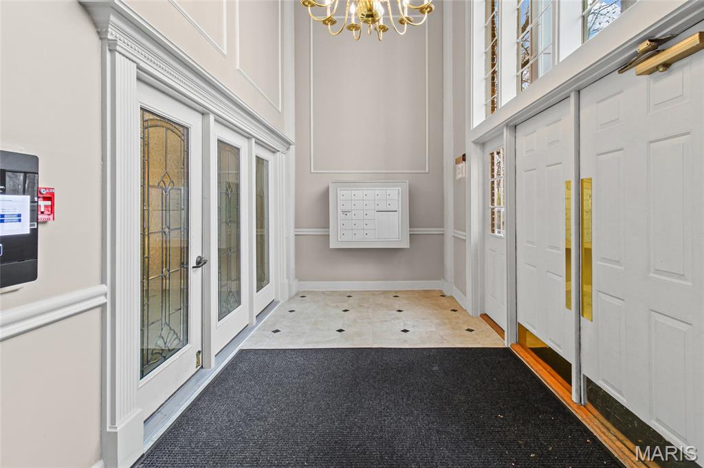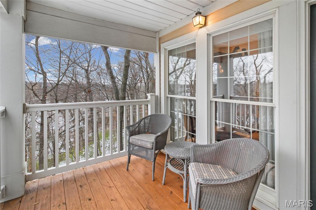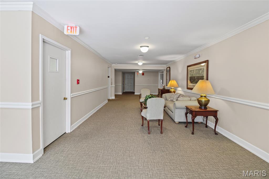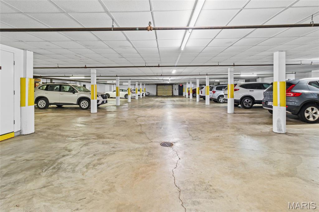 Top-Floor, End-Unit Condo with an unbeatable view. Enjoy your treehouse-like retreat from your TWO private, covered decks with a tranquil wooded backdrop. This upper-level location allows for elegant coffered ceilings throughout most of the space, giving it an open, airy feel. Inside, you’ll find an inviting Living Room spacious enough for multiple seating areas, along with a formal Dining Room that opens directly to one of the decks—perfect for indoor-outdoor entertaining. The updated Kitchen features stainless steel Cafe appliances, Quartz countertops, coffee bar + an adjoining breakfast nook with a large bay window. So much natural light in this home. The expansive Primary Suite offers two walk-in closets, its own private deck, and an updated ensuite bath with a large walk in shower and double sinks . An in-unit washer and dryer are included for added convenience. Both baths have been fully renovated and also have Quartz countertops. Storage is a breeze—your dedicated storage locker is just steps away down the hall. You’ll also appreciate having TWO assigned parking spaces in the secure underground garage. This building offers owner lounges on all floors and also a large gathering room on main level - ideal for gathering with friends or relaxing on your own. An elevator services all levels. Neighborhood amenities include a community pool and clubhouse. All of this in a perfect Chesterfield location at Highways 40 & 141 near St. Luke’s. Showings start Wednesday 12/3.