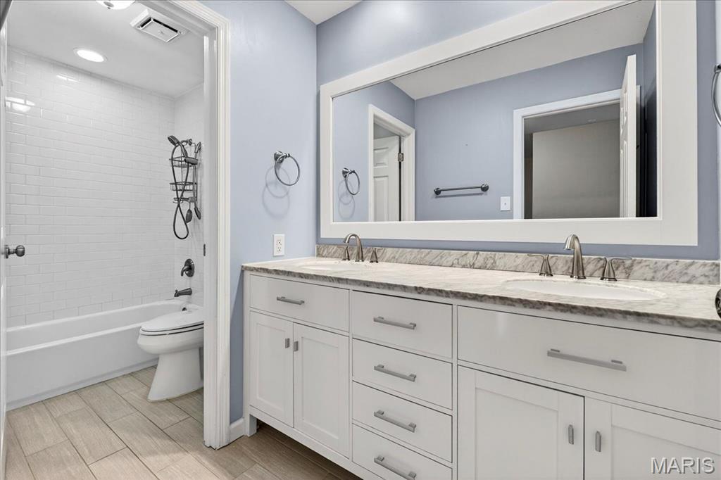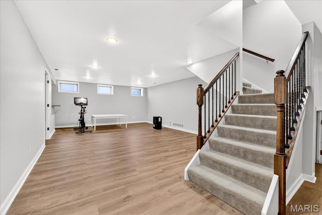 WELCOME HOME! Location, Location, Location! Charming Home, beautifully updated two-story home on a desirable corner lot, almost 1/2 acre in a sought-after subdivision, perfectly situated in a convenient and central location. Beautiful hardwood floors greet you in the entry with office space on one side and updated dining room that opens to a stunning, LARGE gourmet kitchen, complete with a 6' center island, granite countertops, 42in cabinets and an inviting eat-in area overlooking your private backyard. A spacious laundry room is conveniently located just off the kitchen. Move into the warm and welcoming family room, highlighted by a charming gas fireplace flanked by custom built-in bookcases and a large picture window and sliding door that fills the space with natural light and views of the backyard. Upstairs, you'll find a spacious primary bedroom with a large sitting area-ideal for a home office, nursery, or cozy reading nook, along with en suite bathroom. Three additional bedrooms and full hall bathroom complete the upper level. Head downstairs to the beautifully updated lower level featuring NEW luxury vinyl plank flooring in the recreation room and a full bathroom, offering excellent space for entertaining or hobbies. Plenty of storage throughout the basement as well. This home has been meticulously maintained with numerous updates, including a NEW roof, gutters, and gutter guards, NEW front walkway, NEW garage door, NEW kitchen refrigerator, updated kitchen light fixture, Dining room fixture, NEW ceiling fans, and NEW flooring plus fresh paint in the basement. Truly move-in ready and a must-see! WELCOME HOME!