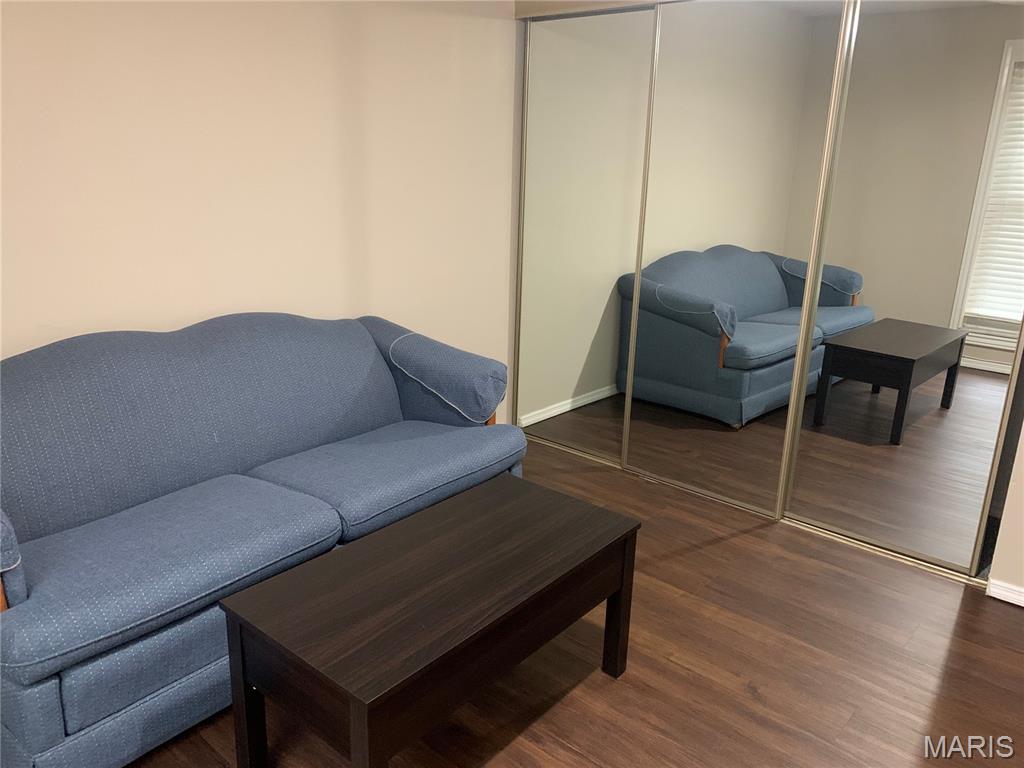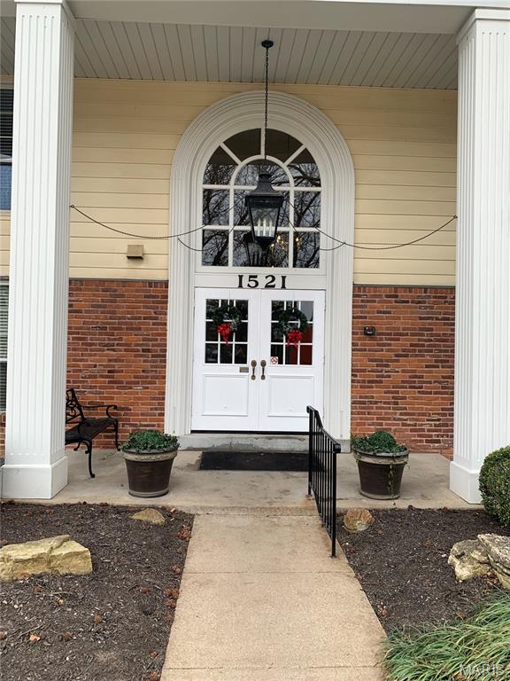 Prime Chesterfield Location! Spacious 1st floor condo (1539 sq. ft.) in sought-after Brandywine Condos is move-in ready. A light-filled living room greets you upon entry, complete with cozy fireplace that leads to a private outdoor patio. There is an adjoining dining room just off the kitchen. Washer/dryer hook-ups are in the unit with a handy closet nearby. The primary suite includes a walk-in closet, bath and shower. The 2nd bedroom has a walk-in closet as well as a guest bathroom. This well-maintained community features lush grounds, a swimming pool, private entrance, elevator access, one covered garage space and storage room. Easy access to Interstate 40/64 and nearby restaurants and shopping round out the list of pluses this property offers.