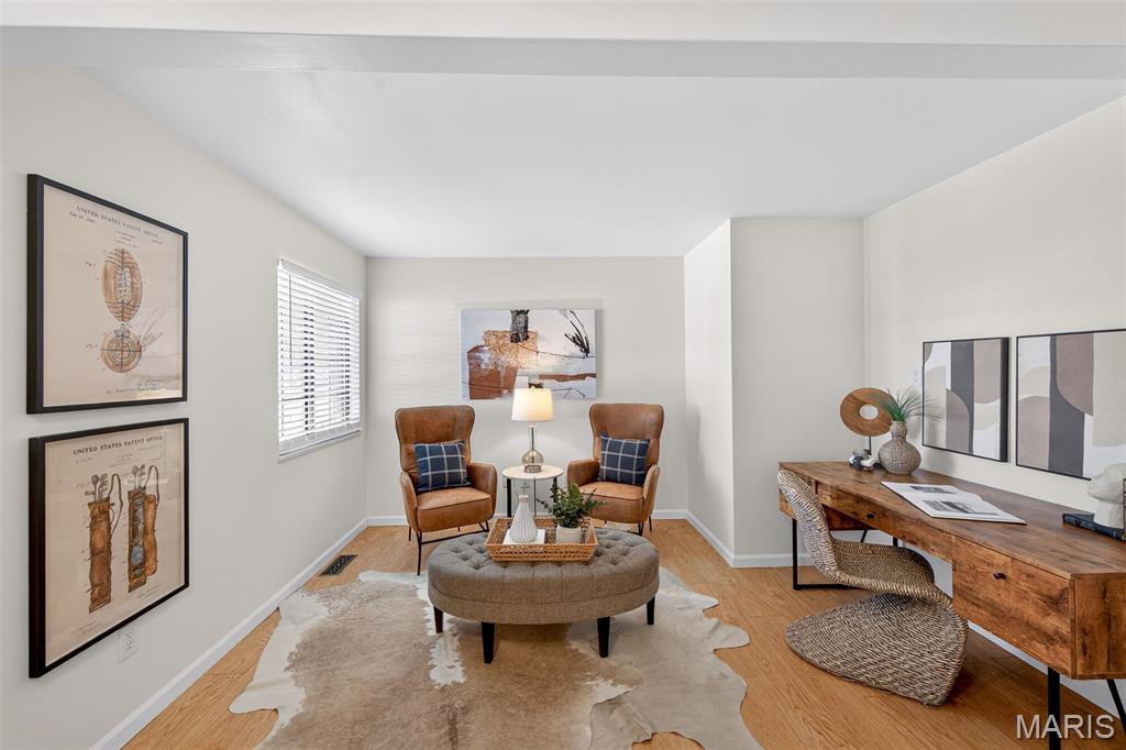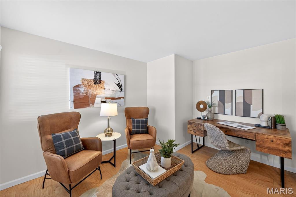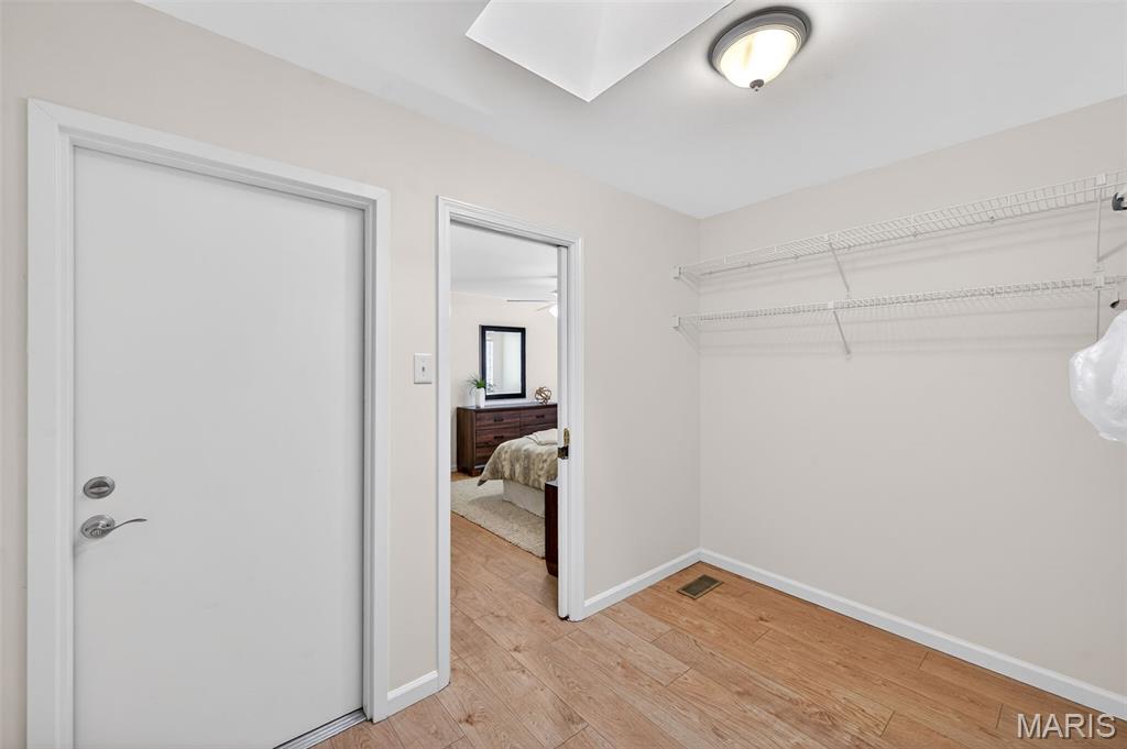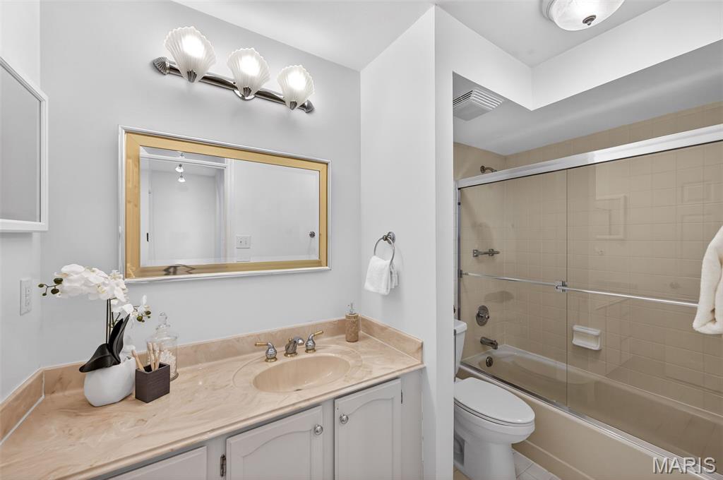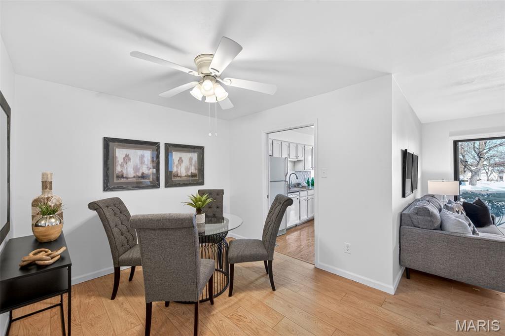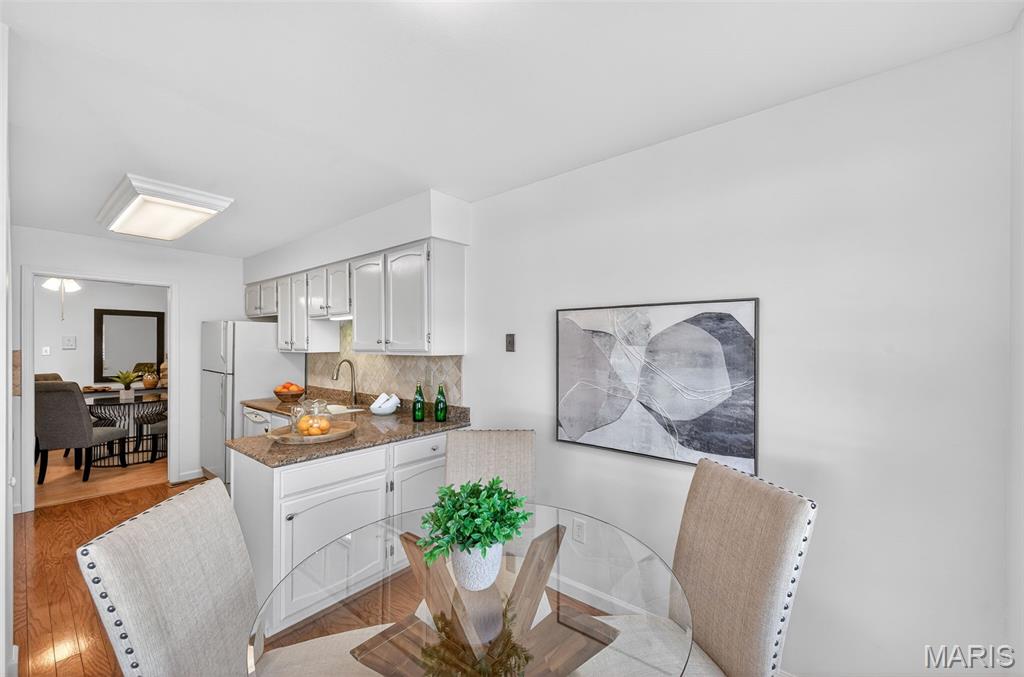Beautiful 2 bedroom, 2 full bath MAIN level garden condo all on one level! This Ranch style condo is in the Windsor Manor subdivision conveniently located minutes from the new Urban Downtown Chesterfield area where there are so many exciting new things to experience! There are lots of restaurants, shopping, outlet mall, parks, walking paths, Butterfly House, Faust Park and so many fun entertainment places located in The District! This OPEN CONCEPT condo was freshly painted, has LVP throughout the main living areas, granite countertops, new microwave, a huge Utility Room and Primary Bedroom closet. It sits across the parking lot from the community pool, has a covered patio area and a 1 car attached garage with built-in shelves. The fireplace is being sold as is because it has not been used by the current owner. Water Heater replaced in 2022. HVAC replaced in 2020.