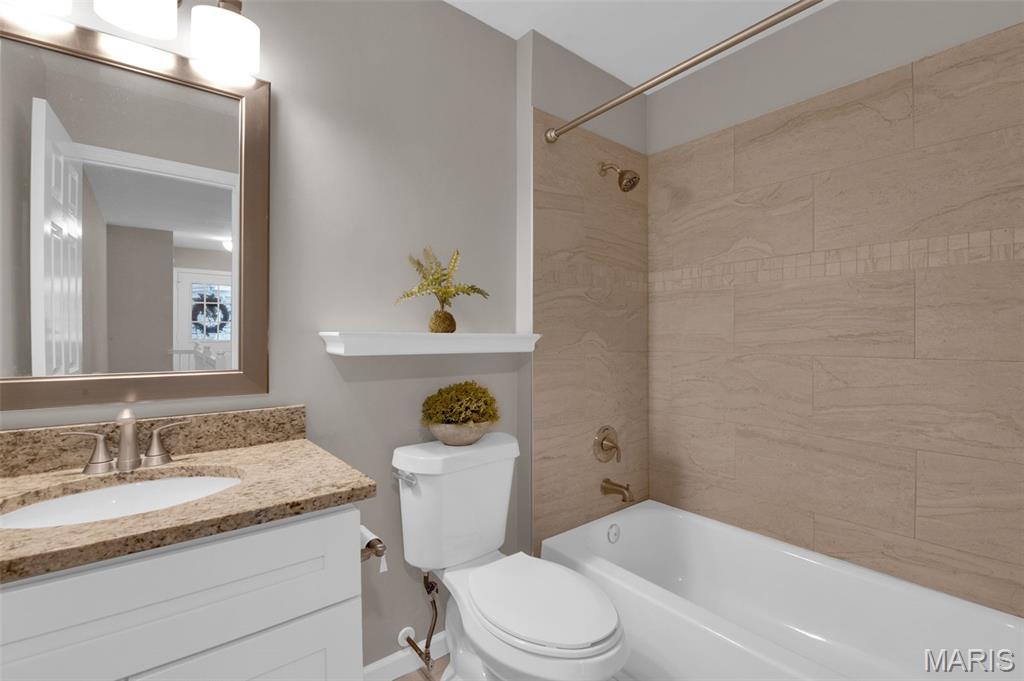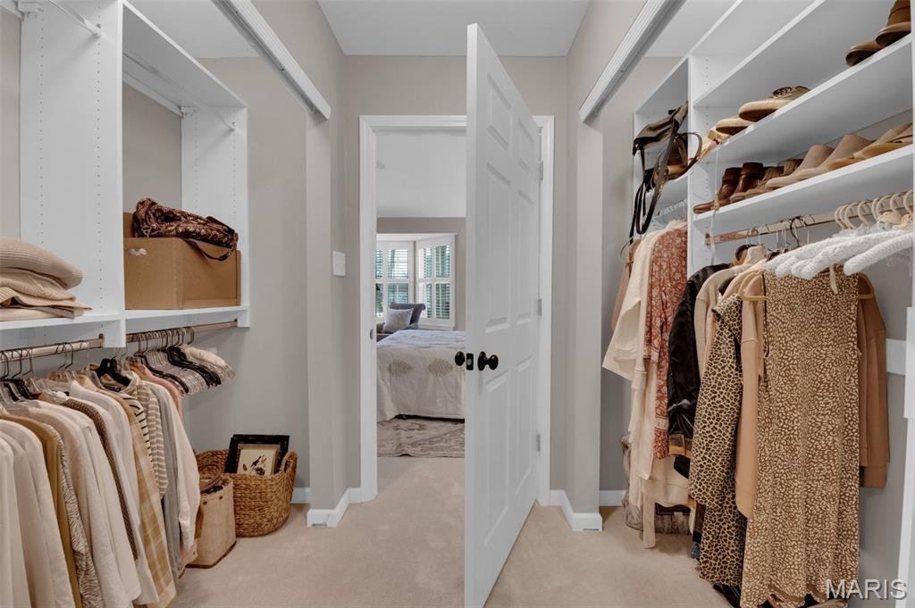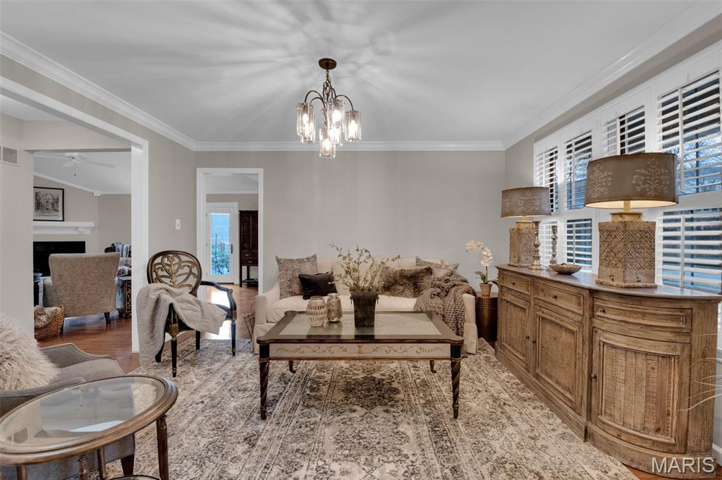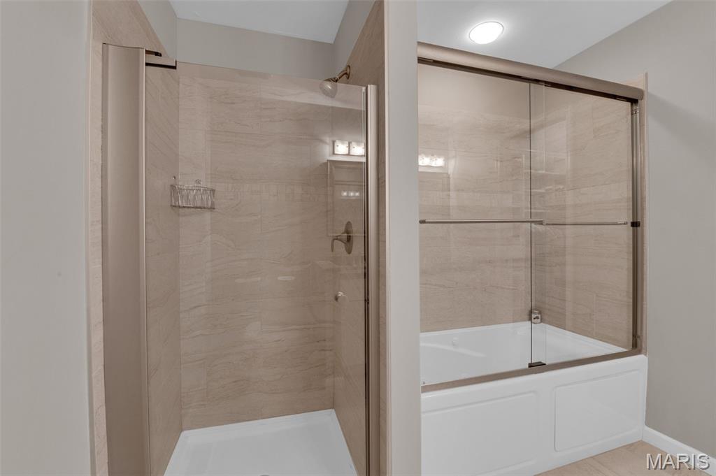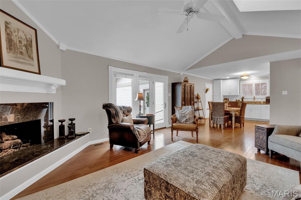 Beautifully maintained end-unit villa offering 2 bedrooms, 2.5 baths, and a 2-car garage in the highly desirable Villages at Baxter Ridge. This home combines low-maintenance living with thoughtful design and functional main-level layout. The main floor features a formal dining room with wood flooring and a spacious great room highlighted by skylights, a fireplace, and direct access to a private patio. The kitchen offers white cabinetry, stainless steel appliances, double sink, eat-in breakfast area, and convenient access to the attached garage. Main-floor laundry adds everyday convenience. Both bedrooms are located on the main level. The primary suite is generously sized with a bay window, plantation shutters, vaulted ceiling, ceiling fan, neutral paint, and carpeting. The en-suite bath features double vanities, a separate soaking tub, and separate shower, both with glass enclosures. The guest bedroom includes a large window and ample closet space. The finished lower level provides additional living space ideal for recreation, media, office, extra sleep, or hobby use, along with a half bath for added functionality. The private outdoor space serves as a true extension of the home with an aggregate patio, mature landscaping, and a 6-foot white vinyl privacy fence. Unique driveway access to the patio area enhances flexibility and convenience. Located in a prime Chesterfield setting close to shopping, dining, and major highways, this villa offers comfort, privacy, and accessibility in one of West County’s most convenient corridors.