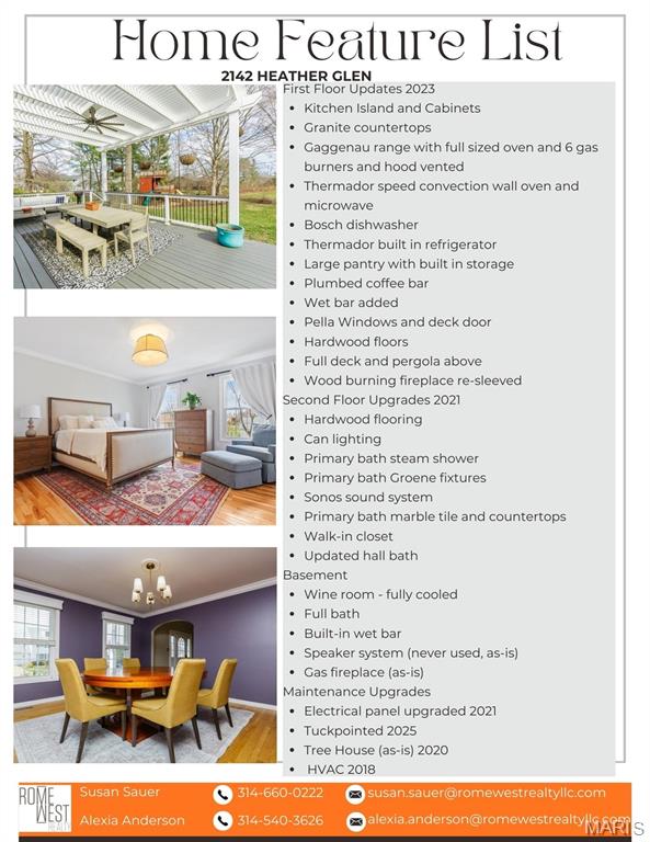 Beautifully renovated home in coveted Chesterfield neighborhood, offering the convenience of easy access to highways and stores. Rich hardwood floors, a soft neutral palette, and thoughtful designer finishes create a warm, light-filled home with expansive windows and classic architectural charm. The spacious living room is centered around a decorative fireplace and flows into a beautifully done chef’s kitchen and separate formal dining area making it perfect for everyday living and entertaining. Cook to your hearts content in this updated eat-in kitchen featuring granite countertops, stainless steel Gaggenau and Thermador appliances, and a built-in pantry. All bathrooms are tastefully updated with full-wall high-end tile finishes, including a stylish primary bath with double sinks and marble finishes. The flexible layout offers four bedrooms, 3.5 bathrooms, and a fully finished basement with a bar and large walk-in wine cooler. Plus, a large, covered deck for entertaining off the kitchen and family room ideal for summer barbeques and family gatherings. Additional features in the home include Bluetooth speakers in primary bath, steam shower in primary bath, plumbed coffee bar in kitchen, treehouse for kids, and gas line for gas fireplace on deck. This home is ideally located just moments from restaurants, shops, and top-rated schools, this residence combines timeless style with functionality. Showings begin Thursday, March 19th. Fireplaces to be conveyed in AS IS condition.