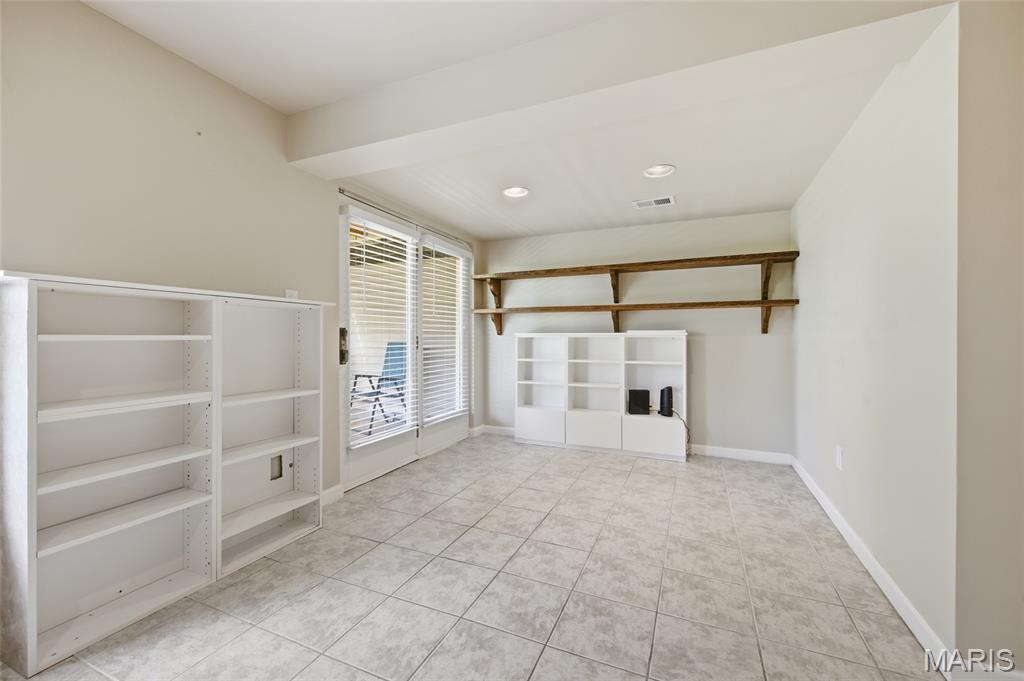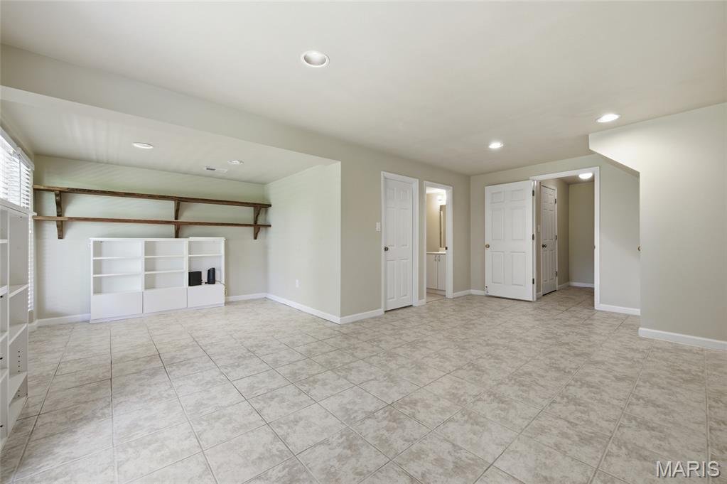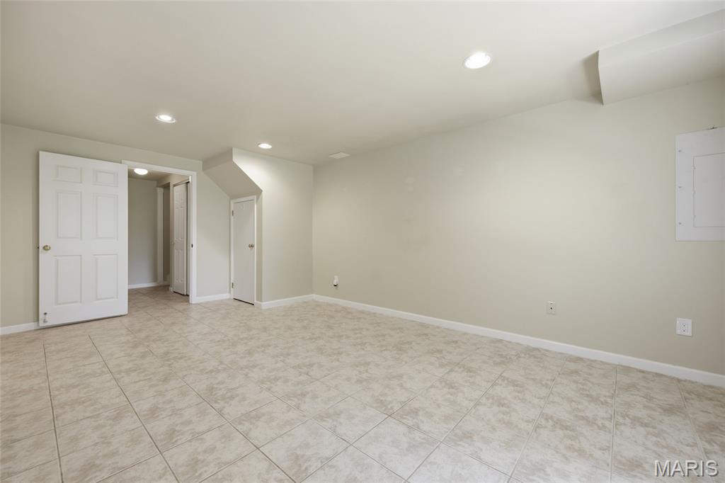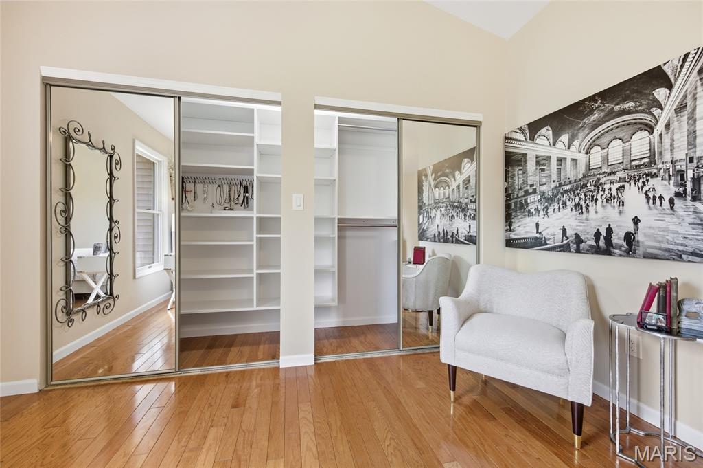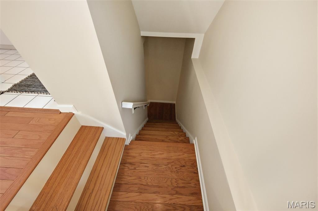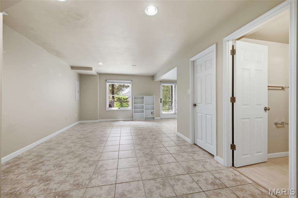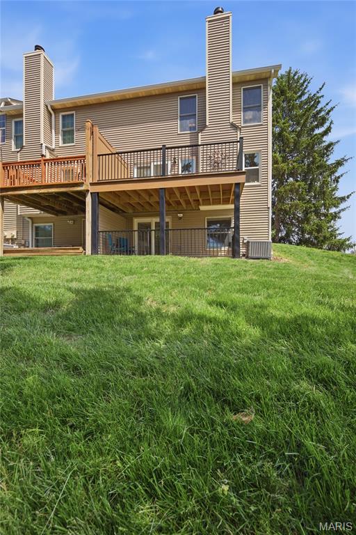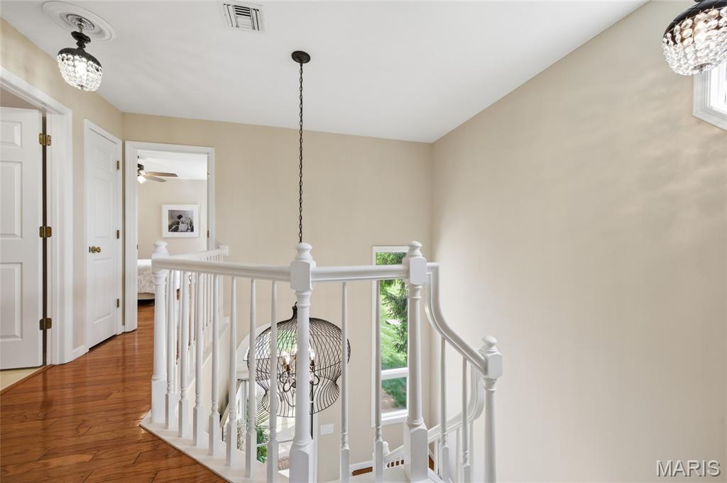 Coveted end unit with 3 exposures brings about a light and bright townhouse with only one shared wall in the heart of Chesterfield’s desirable Clarkson Grove! A rare, private entrance leads to a dramatic 2 story entry and 1,850+ sqft of updated living space, next to subdivision common ground. The open-concept main level features gleaming hardwood floors, a cozy wood burning fireplace and open kitchen. Enjoy seamless indoor-outdoor living on one of the largest decks in the complex - a newer (2024) maintenance free composite type with aluminum railings. In addition, a lower-level patio offers privacy overlooking tree lined grounds! The spacious vaulted primary suite offers two closets with new closet organizer (2025) and a large luxurious bath with a newer vanity and soaking tub. A finished lower level includes either a 3rd Bedroom or a large rec/hobby room. The lower level also has a full bath, walk-in closet and leads to the private patio. Main floor laundry and private, attached garage. HOA fee includes the pool, lawn care, sewer, water, trash, and snow removal. Washer, dryer, & refrigerator included. New roof (11/2025) and new siding and gutters coming soon (2026), freshly painted (2026), new outlets and light switches (2026). Walk to Trader Joes, Dierbergs, 2 book stores, restaurants and more! Steps from Chesterfield's new development, Downtown Chesterfield! Top-rated parkway schools and a vibrant community offers convenient, easy access to I-64. Move in and enjoy low-maintenance, effortless living in one of Chesterfield’s most sought-after communities!