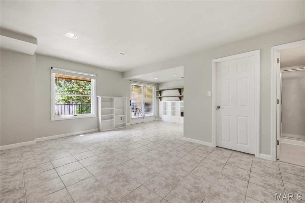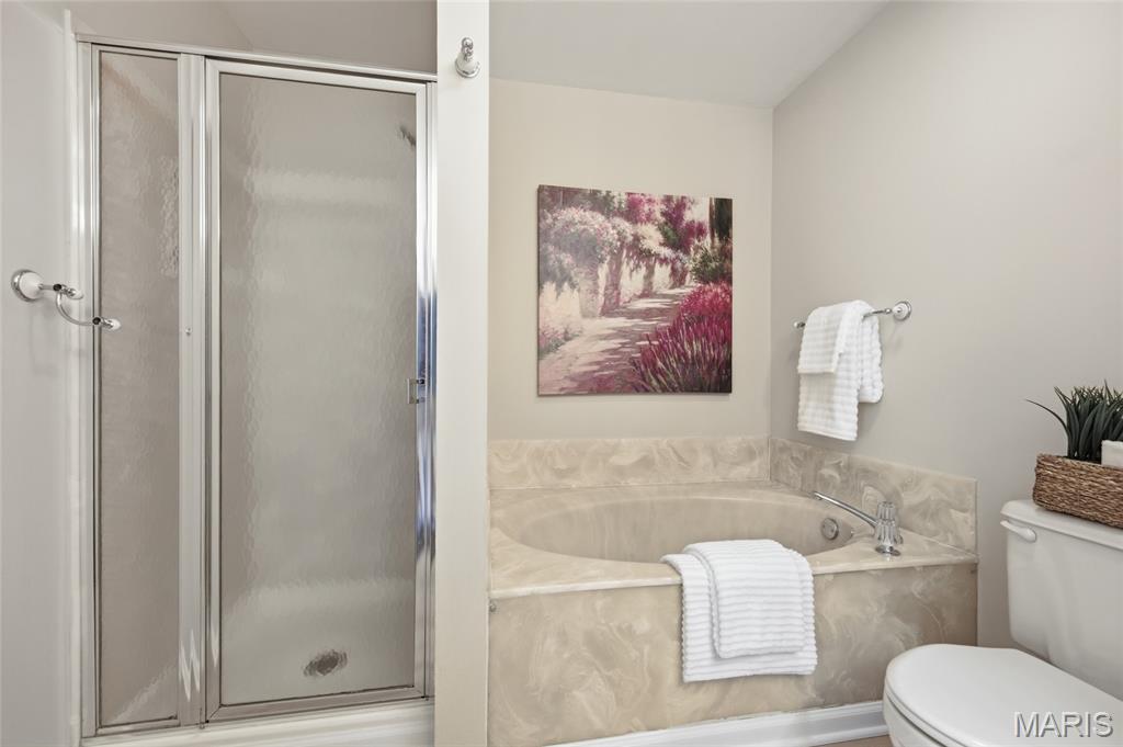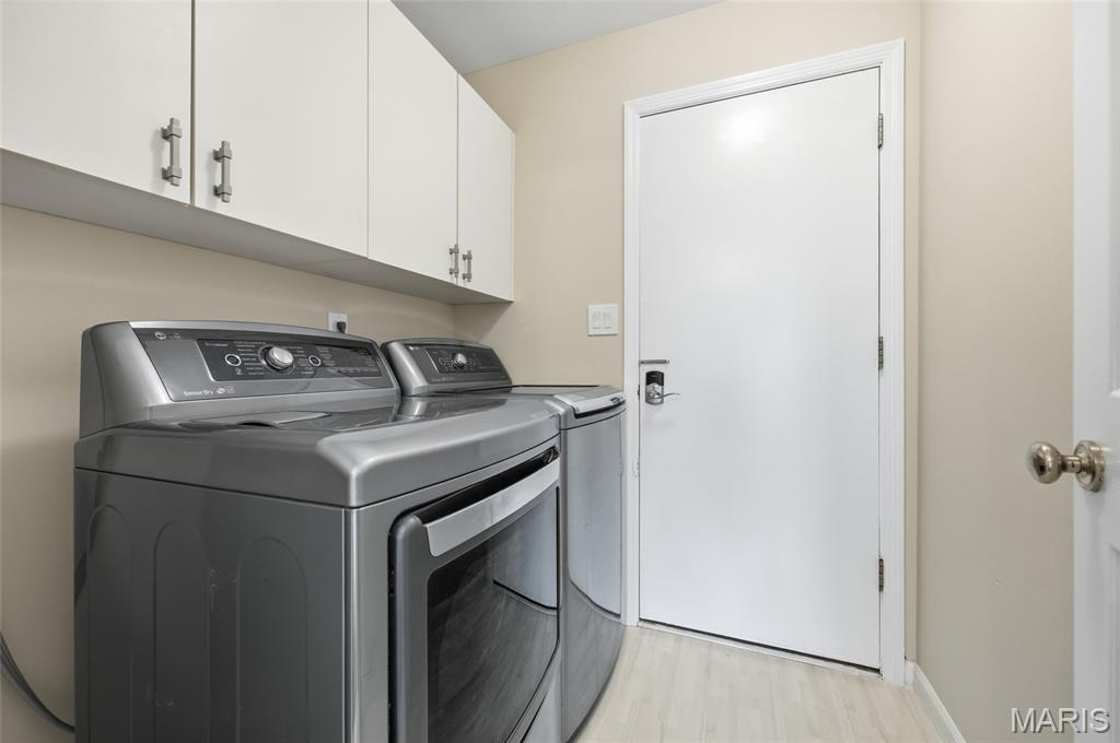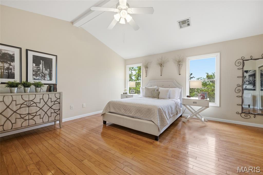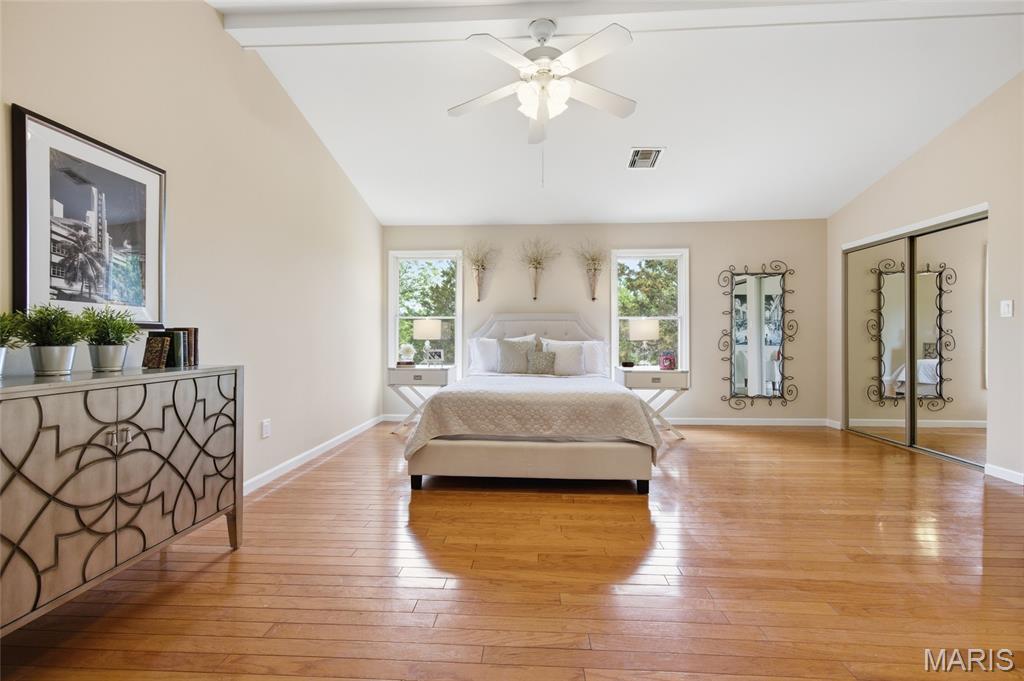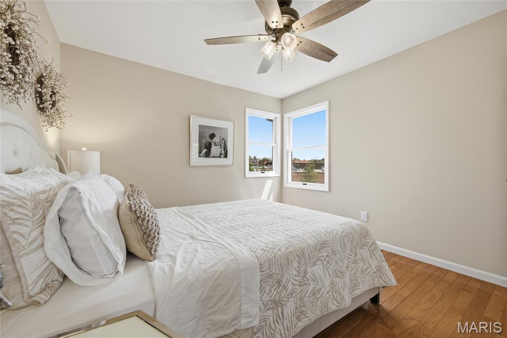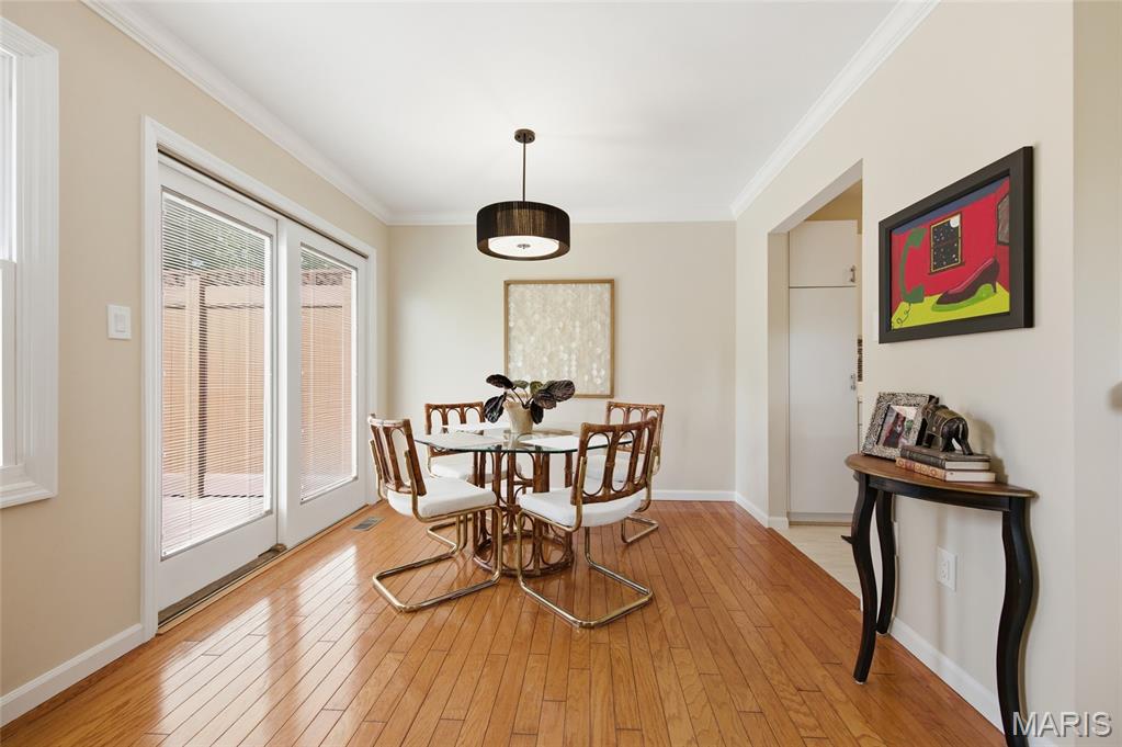 Coveted end unit with 3 exposures brings about a light and bright townhouse with only one shared wall in the heart of Chesterfield’s desirable Clarkson Grove! A rare, private entrance leads to a dramatic 2 story entry and 1,850+ sqft of updated living space, next to subdivision common ground. The open-concept main level features gleaming hardwood floors, a cozy wood burning fireplace and open kitchen. Enjoy seamless indoor-outdoor living on one of the largest decks in the complex - a newer (2024) maintenance free composite type with aluminum railings. In addition, a lower-level patio offers privacy overlooking tree lined grounds! The spacious vaulted primary suite offers two closets with new closet organizer (2025) and a large luxurious bath with a newer vanity and soaking tub. A finished lower level includes either a 3rd Bedroom or a large rec/hobby room. The lower level also has a full bath, walk-in closet and leads to the private patio. Main floor laundry and private, attached garage. HOA fee includes the pool, lawn care, sewer, water, trash, and snow removal. Washer, dryer, & refrigerator included. New roof (11/2025) and new siding and gutters coming soon (2026), freshly painted (2026), new outlets and light switches (2026). Walk to Trader Joes, Dierbergs, 2 book stores, restaurants and more! Steps from Chesterfield's new development, Downtown Chesterfield! Top-rated parkway schools and a vibrant community offers convenient, easy access to I-64. Move in and enjoy low-maintenance, effortless living in one of Chesterfield’s most sought-after communities!