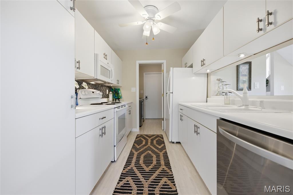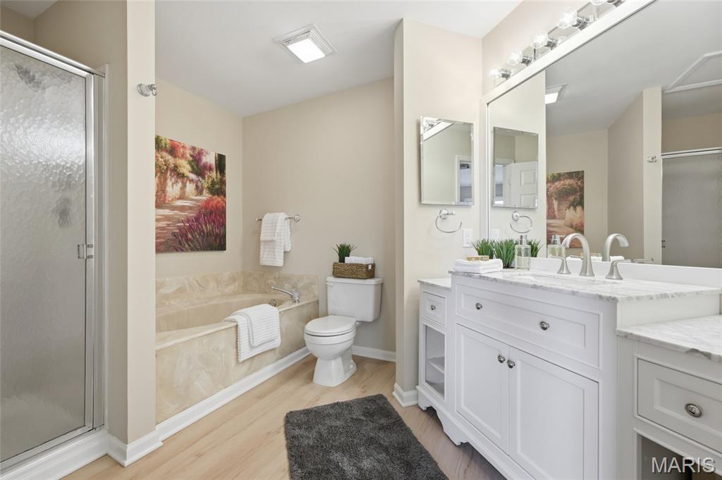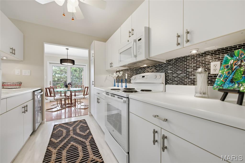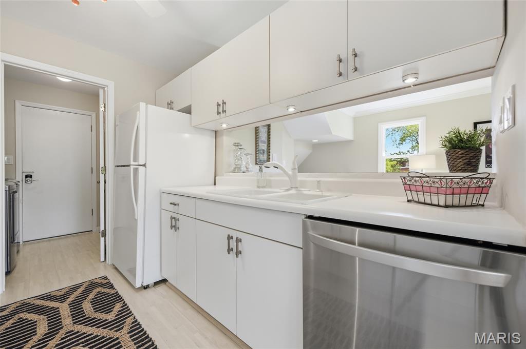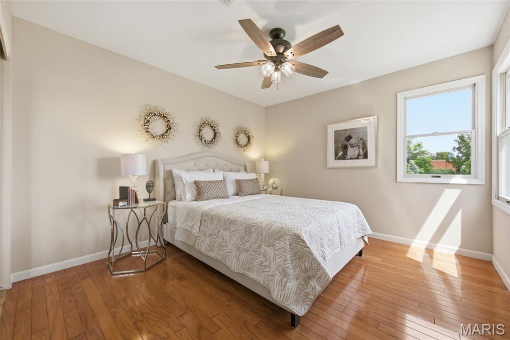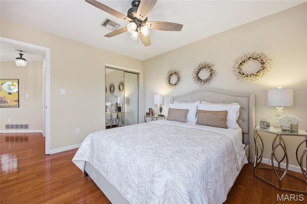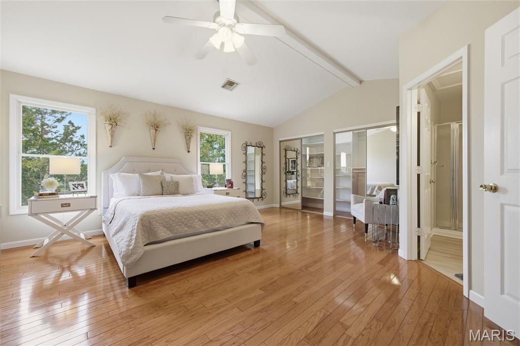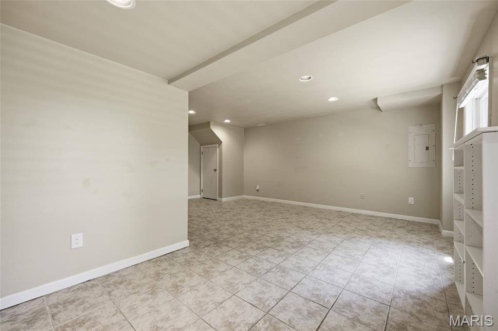 Coveted end unit with 3 exposures brings about a light and bright townhouse with only one shared wall in the heart of Chesterfield’s desirable Clarkson Grove! A rare, private entrance leads to a dramatic 2 story entry and 1,850+ sqft of updated living space, next to subdivision common ground. The open-concept main level features gleaming hardwood floors, a cozy wood burning fireplace and open kitchen. Enjoy seamless indoor-outdoor living on one of the largest decks in the complex - a newer (2024) maintenance free composite type with aluminum railings. In addition, a lower-level patio offers privacy overlooking tree lined grounds! The spacious vaulted primary suite offers two closets with new closet organizer (2025) and a large luxurious bath with a newer vanity and soaking tub. A finished lower level includes either a 3rd Bedroom or a large rec/hobby room. The lower level also has a full bath, walk-in closet and leads to the private patio. Main floor laundry and private, attached garage. HOA fee includes the pool, lawn care, sewer, water, trash, and snow removal. Washer, dryer, & refrigerator included. New roof (11/2025) and new siding and gutters coming soon (2026), freshly painted (2026), new outlets and light switches (2026). Walk to Trader Joes, Dierbergs, 2 book stores, restaurants and more! Steps from Chesterfield's new development, Downtown Chesterfield! Top-rated parkway schools and a vibrant community offers convenient, easy access to I-64. Move in and enjoy low-maintenance, effortless living in one of Chesterfield’s most sought-after communities!